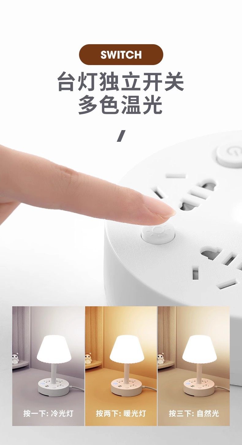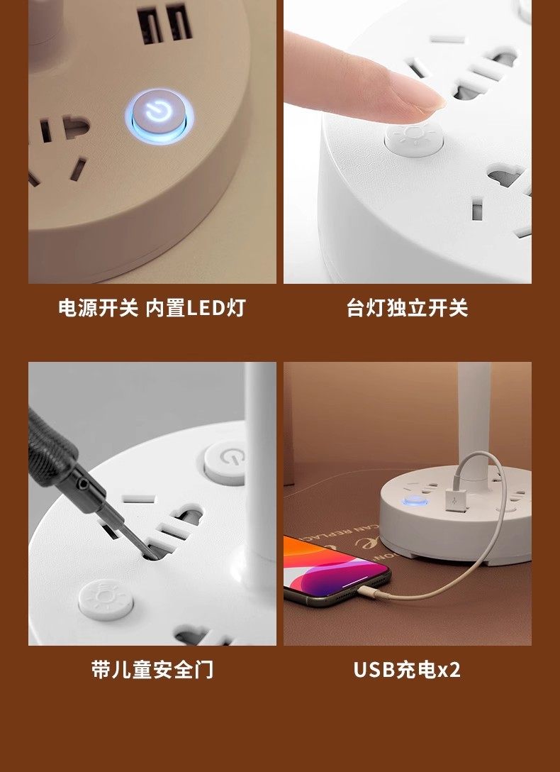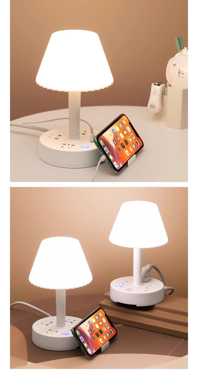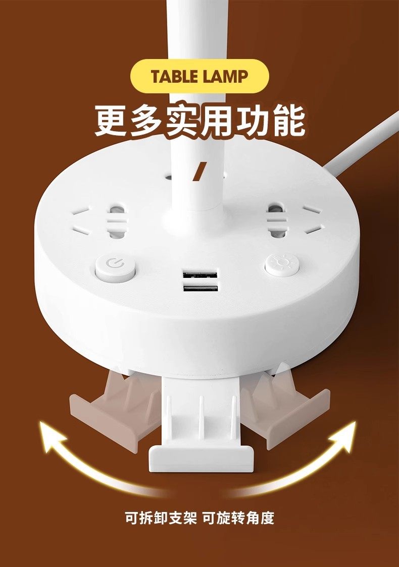 Multi-functional desk lamp socket integrated eye protection bedside lamp multi-position cooling and heating light household LED bedroom lamp insert row