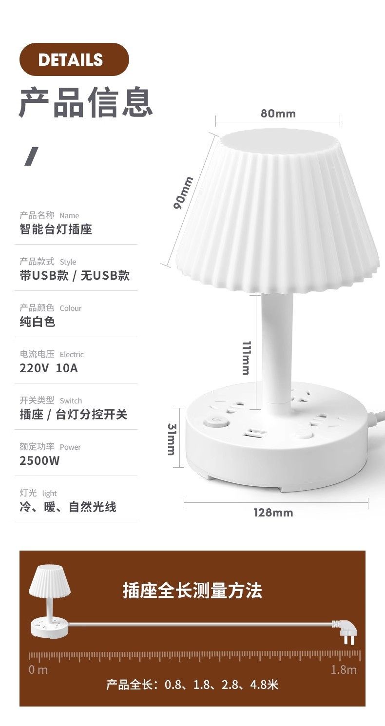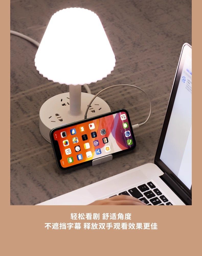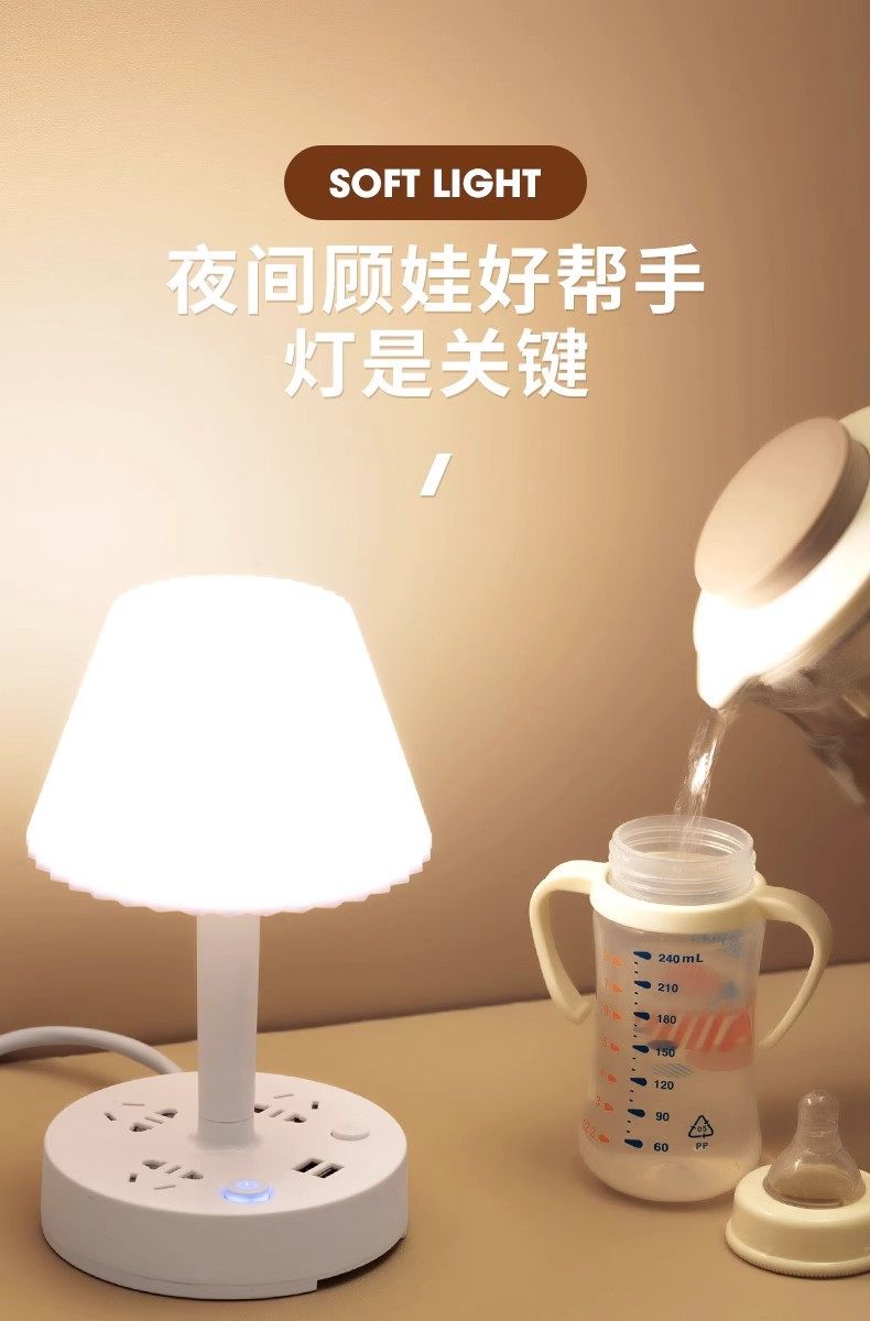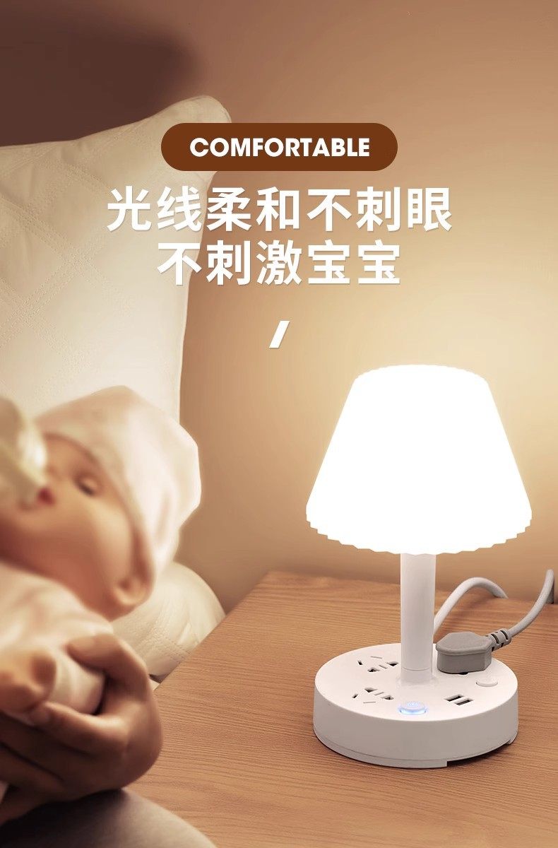 Multi-functional desk lamp socket integrated eye protection bedside lamp multi-position cooling and heating light household LED bedroom lamp insert row