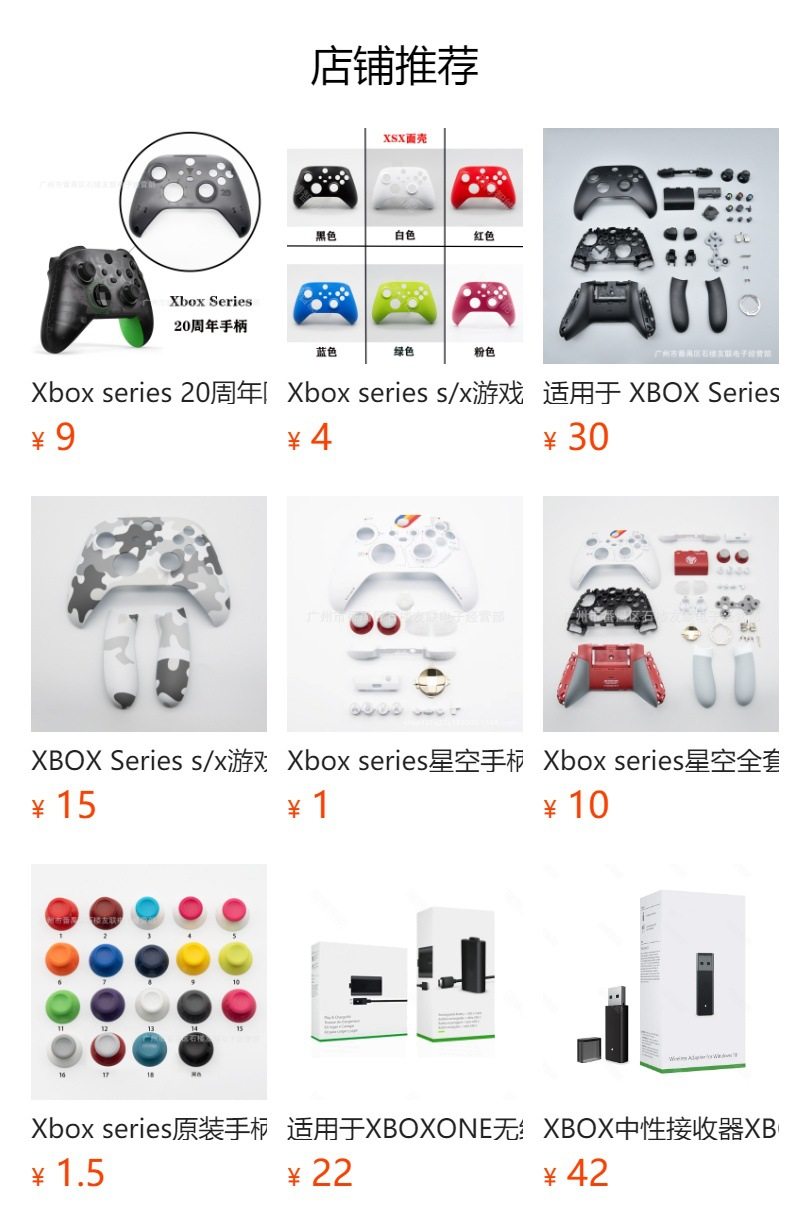 | Product color | Xboxseries bottom shell grip black,Xboxseries bottom shell grip white,Xboxseries bottom shell grip red,Xboxseries bottom shell grip blue,Xboxseries bottom shell grip yellow,Xboxseries bottom shell grip purple,Xboxseries bottom shell grip horizon,Xboxseries bottom shell grip starry sky,Xboxseries black rubber bottom shell,Xboxseries white rubber bottom shell,Xboxseries red rubber bottom shell,Xboxseries blue rubber bottom shell,Xboxseries yellow rubber bottom shell,Xboxseries purple rubber bottom shell,Xboxseries horizon rubber bottom shell,Xboxseries Star Rubber Bottom Shell,Xboxseries black rubber grip,Xboxseries white rubber grip,Xboxseries red rubber grip,Xboxseries blue rubber grip,Xboxseries yellow rubber grip,Xboxseries purple rubber grip,Xboxseries Horizon Rubber Grip,Xboxseries Star Rubber Grip |