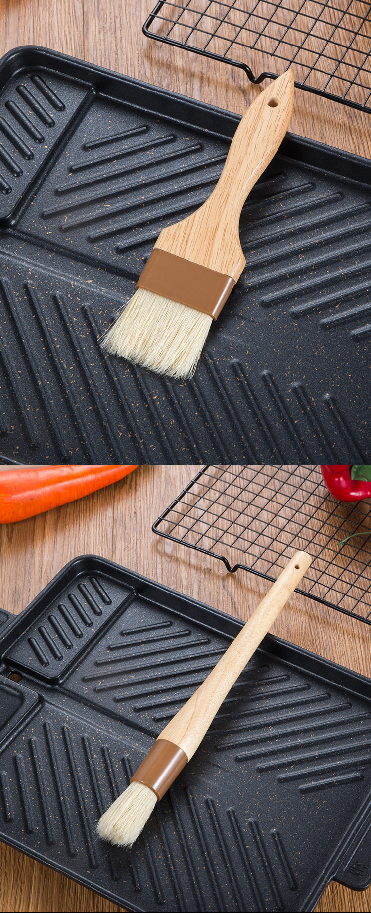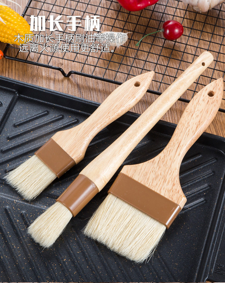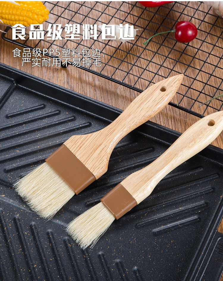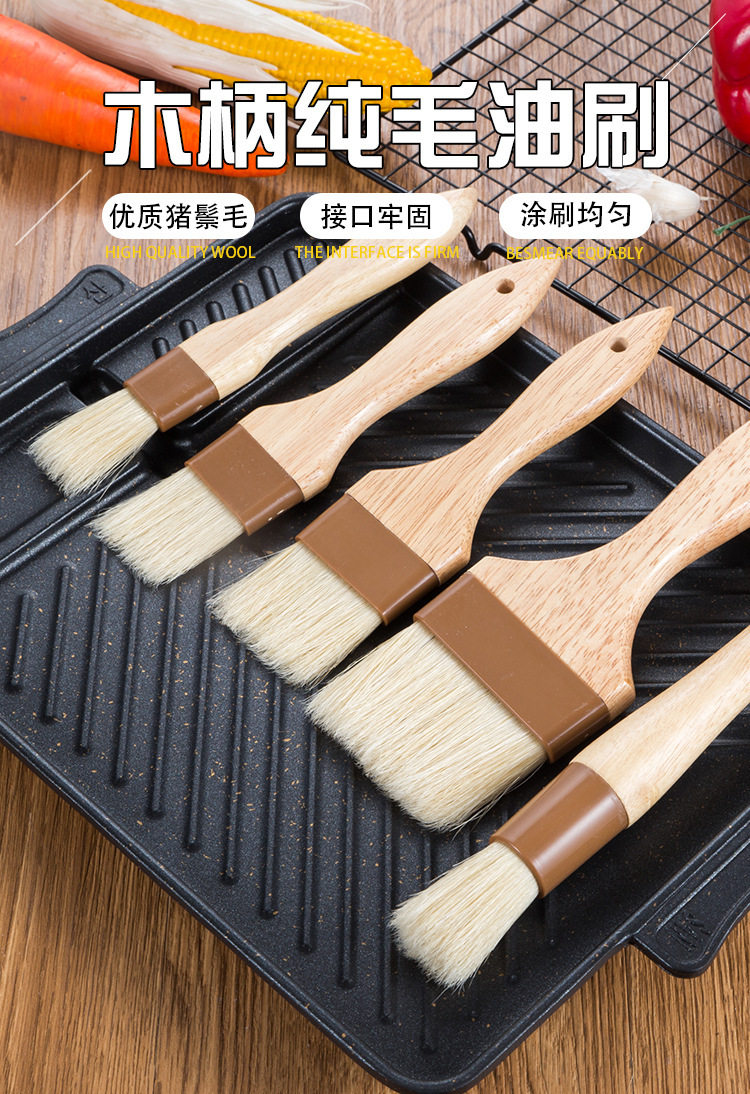Food Grade Wooden Handle Bristle Brush Barbecue Brush Oil Brush Baking Tools Cake Biscuits Kitchen High Temperature Resistant Brush