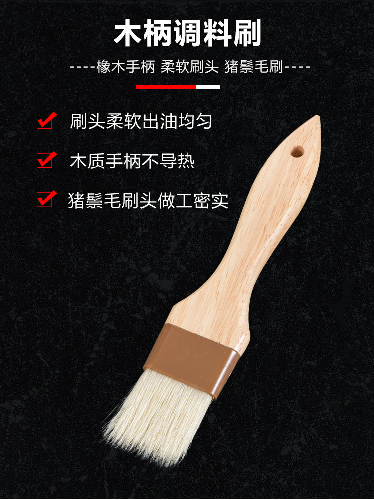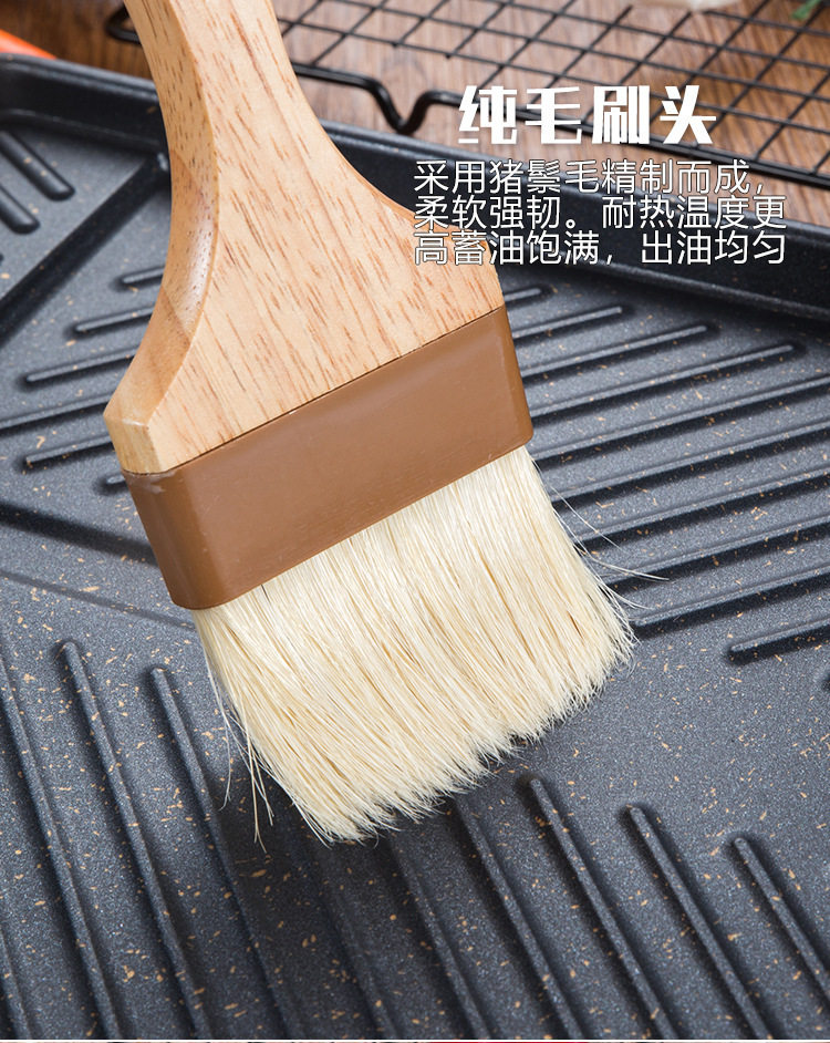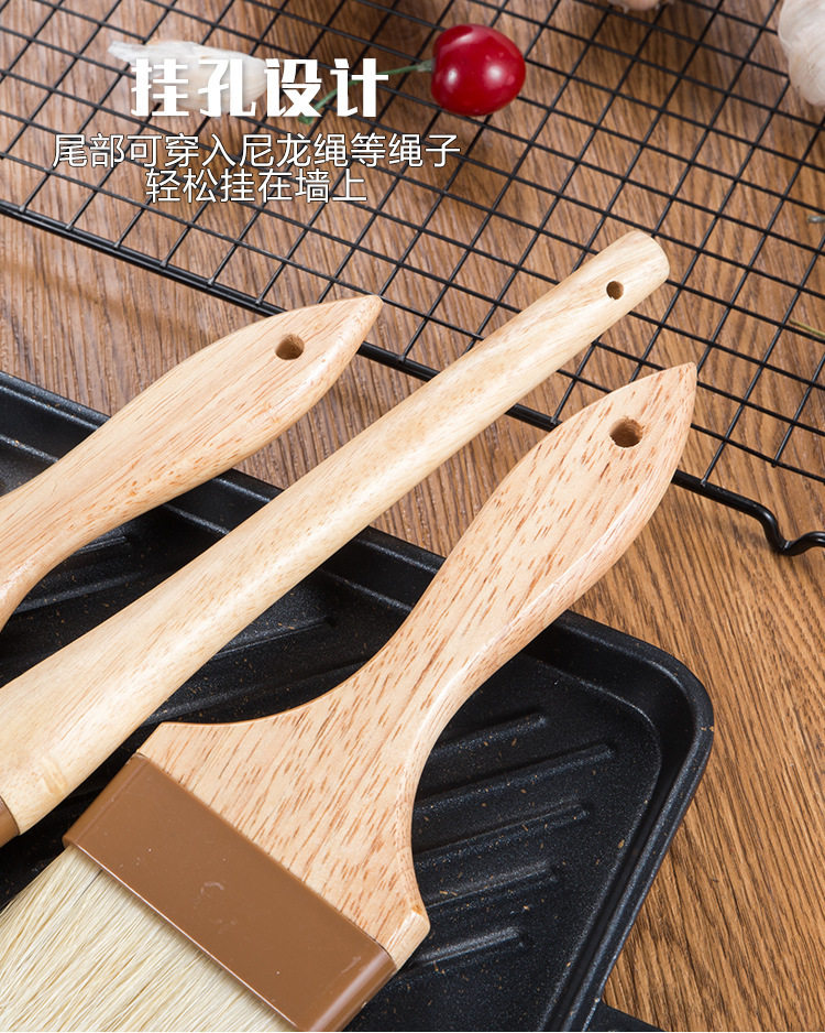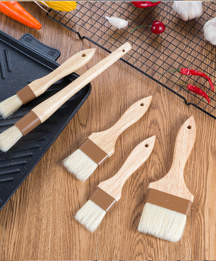 Food Grade Wooden Handle Bristle Brush Barbecue Brush Oil Brush Baking Tools Cake Biscuits Kitchen High Temperature Resistant Brush