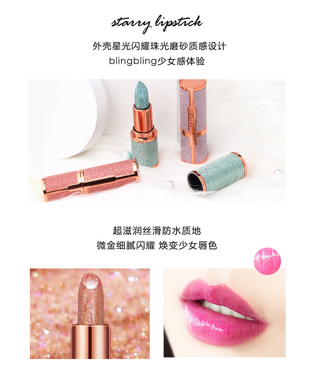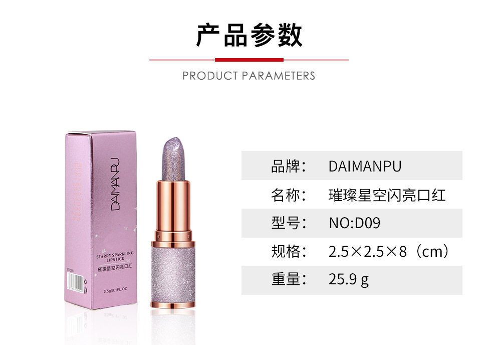 Daimanpu Starry Sky Jelly Lipstick Non-Stick Cup Temperature Changing Lipstick Girl Moisturizing Glitter Color Changing Lipstick Wholesale