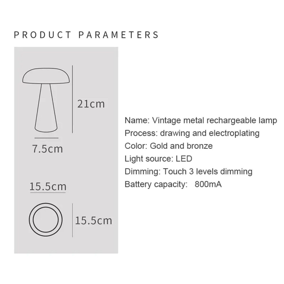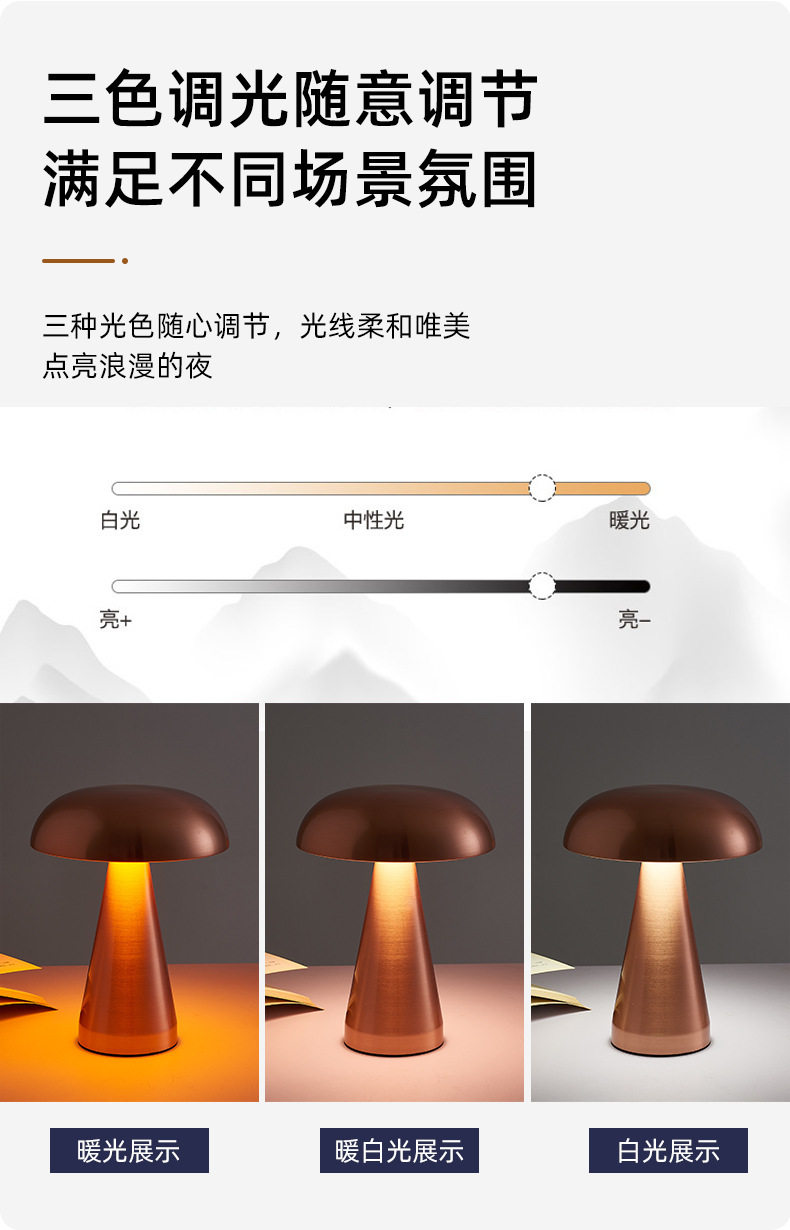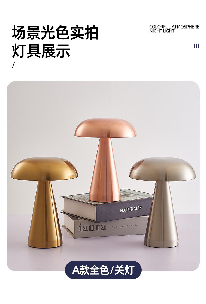 Cross-border Metal Mushroom Table Lamp Nordic Creative Retro USB Charging Cafe Bedside Touch Decorative Table Lamp
