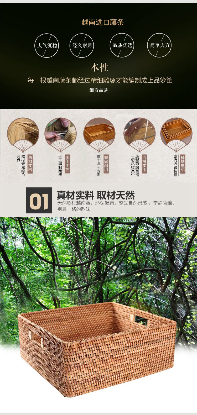 Vietnamese Rattan Storage Basket Rattan Basket Storage Basket Desktop Intimates Rattan Storage Box Storage Basket Rattan Large