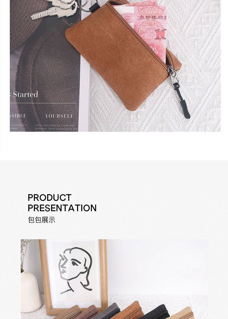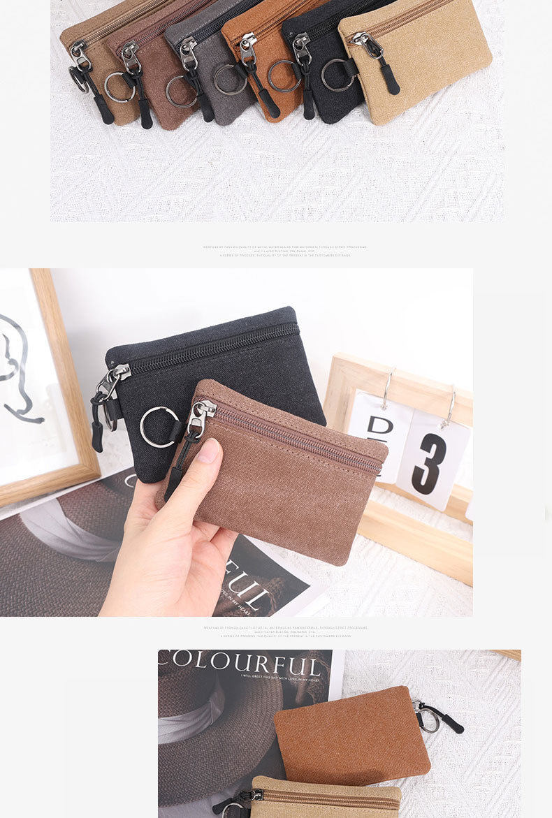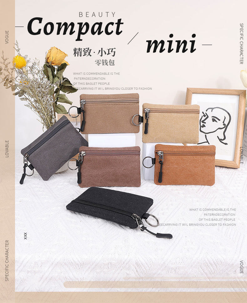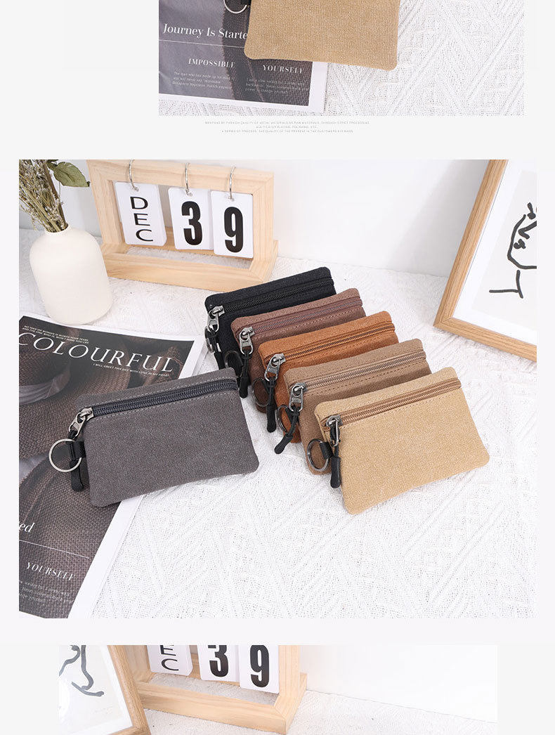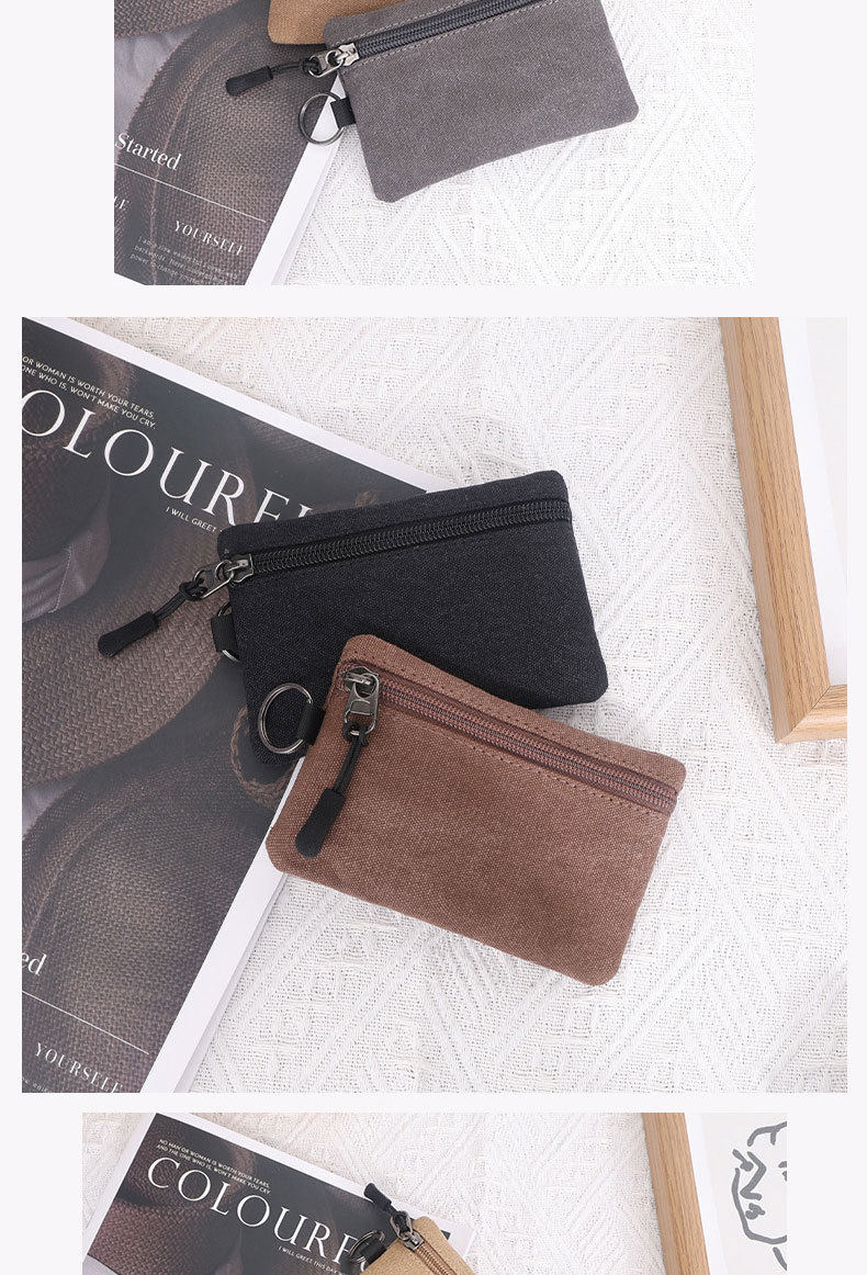 Canvas Small Wallet Coin Purse Portable Small Bag Lanyard Buckle Women's Wallet Coin Key Card Bag Cosmetics Bag