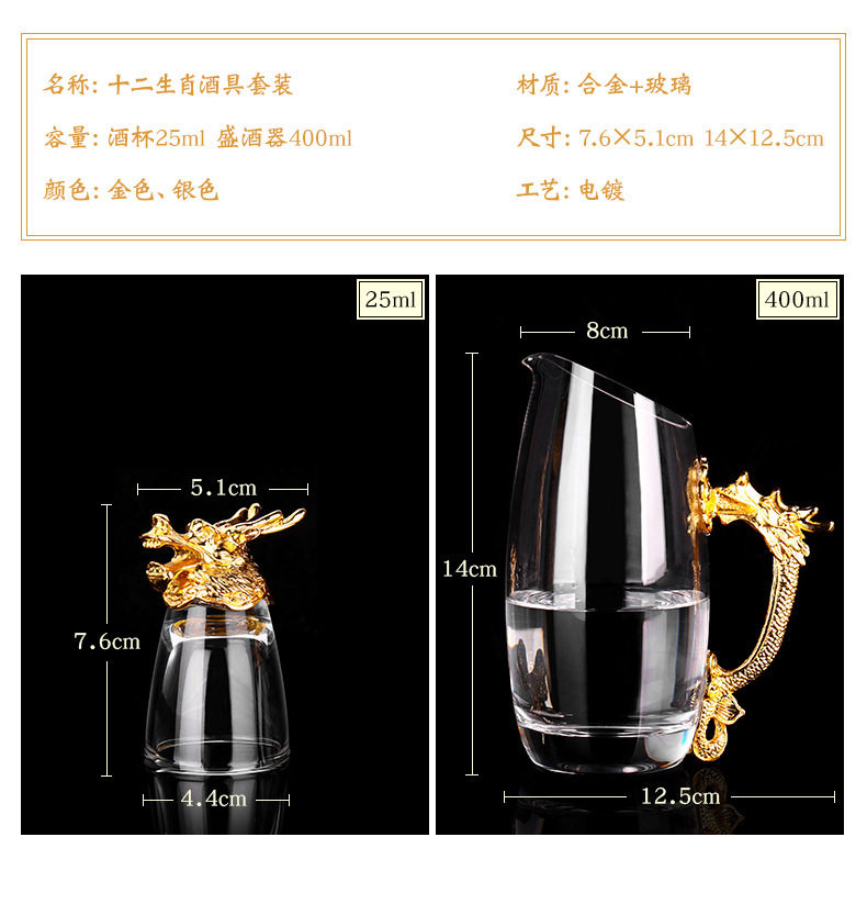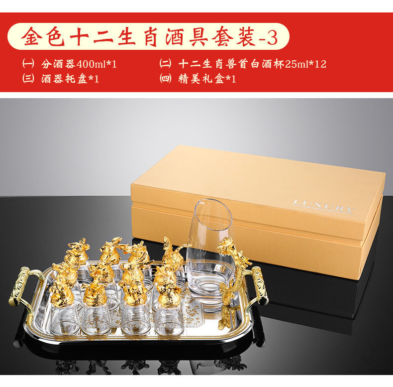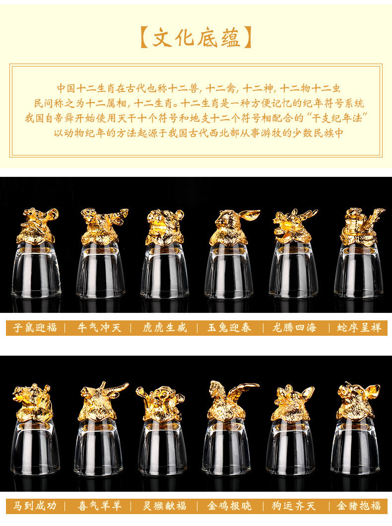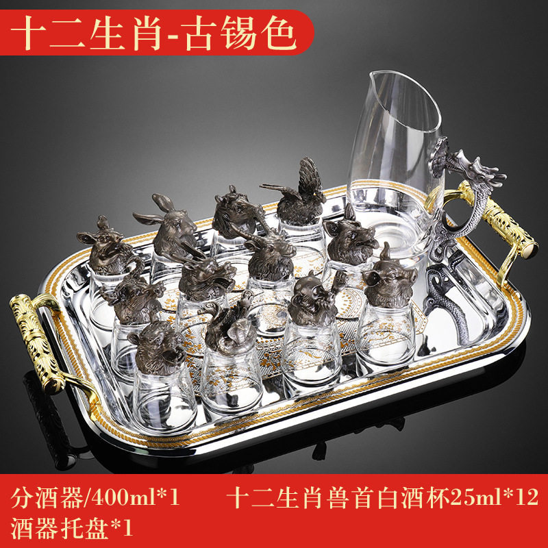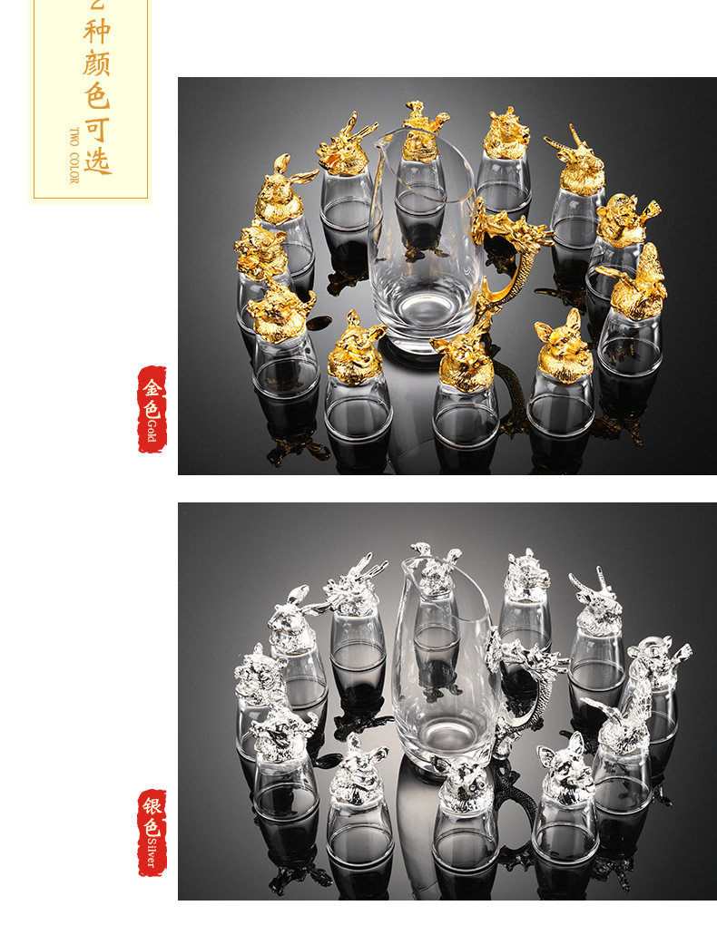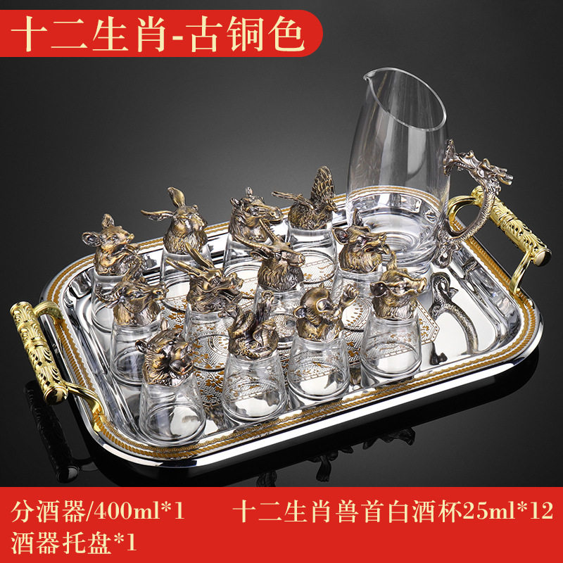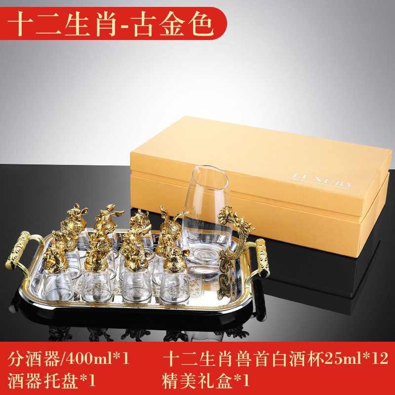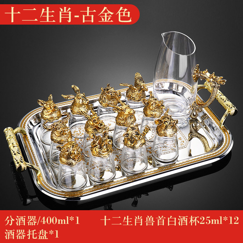 Zodiac Wine Glass Wine Dispencer suit Household Chinese Glass Wine Utensils 12 Small Wine Glasses Bullet One Drink