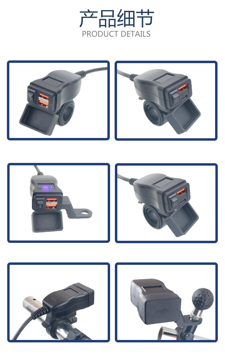 Motorcycle equipped with car usb mobile phone charger with voltmeter QC PD electric car charger fast charging modified waterproof