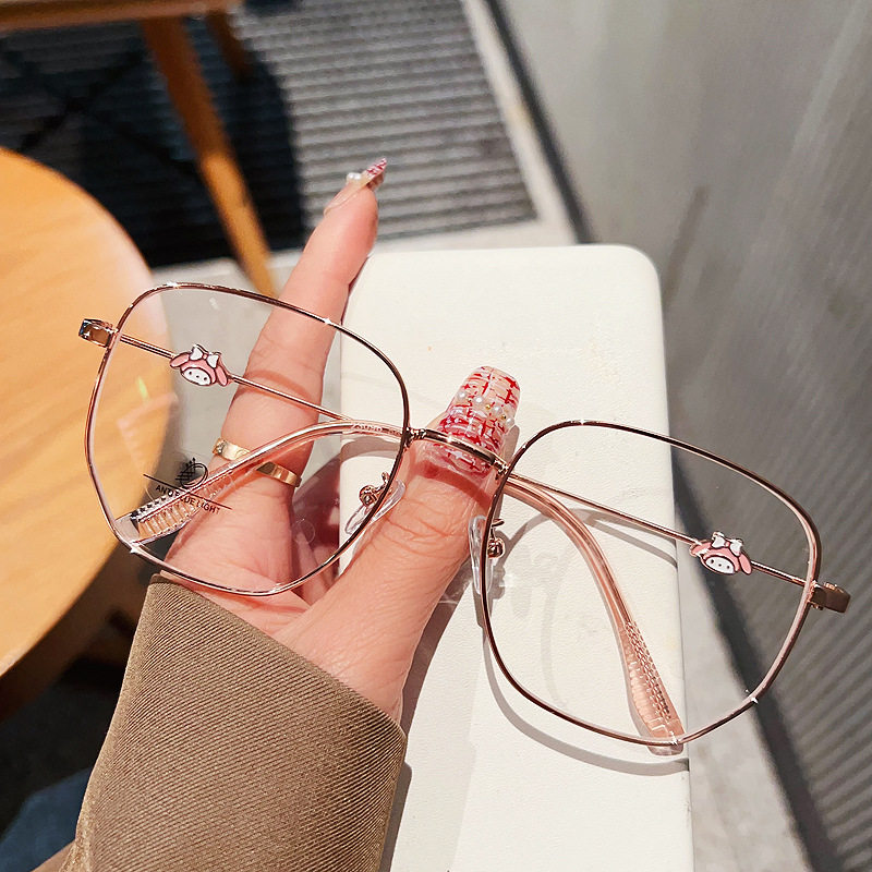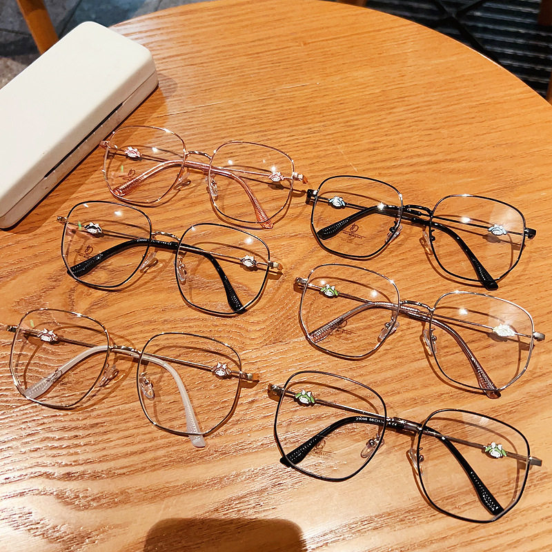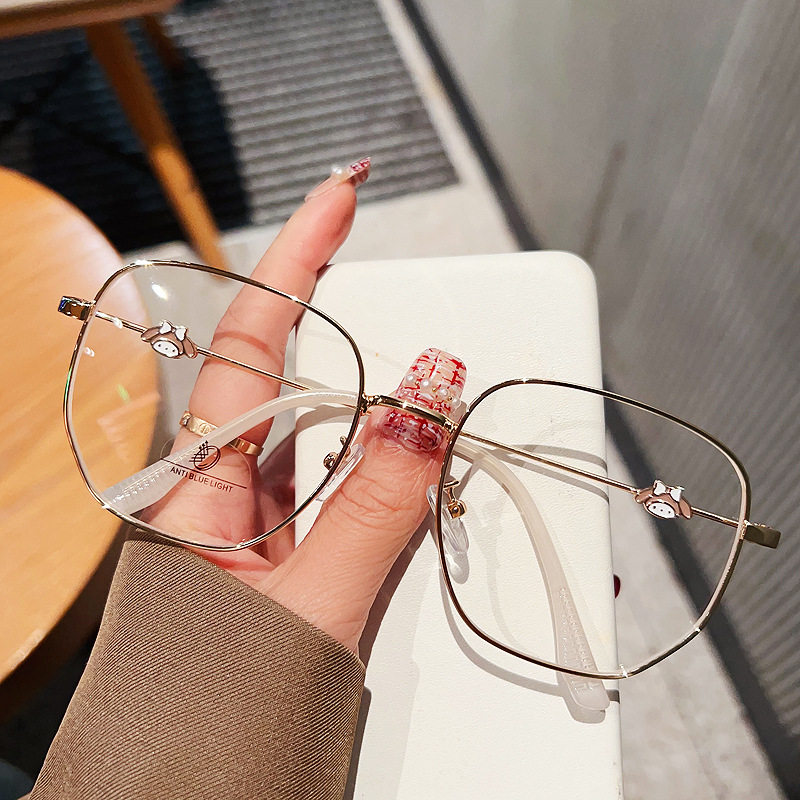 New large metal glasses polygonal glasses frame anti-blue light glasses adorable glasses frame can be equipped with near-sight glasses