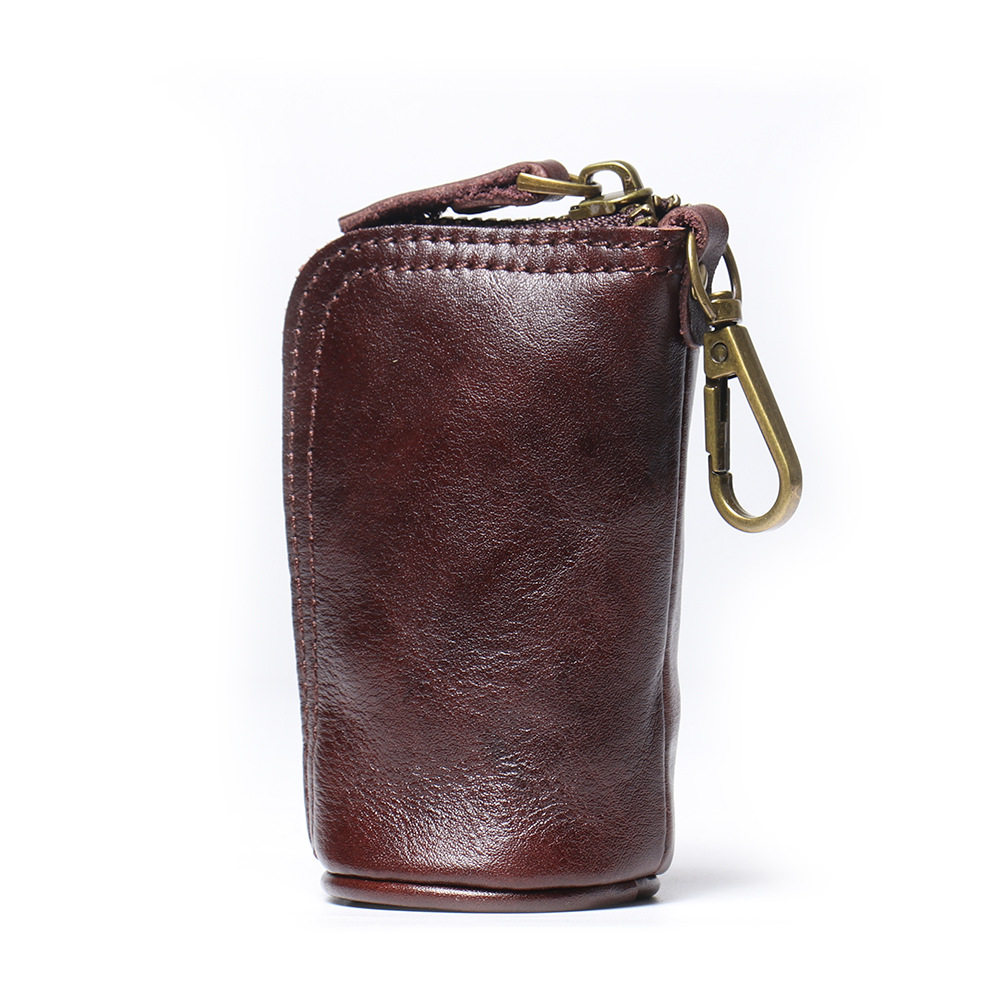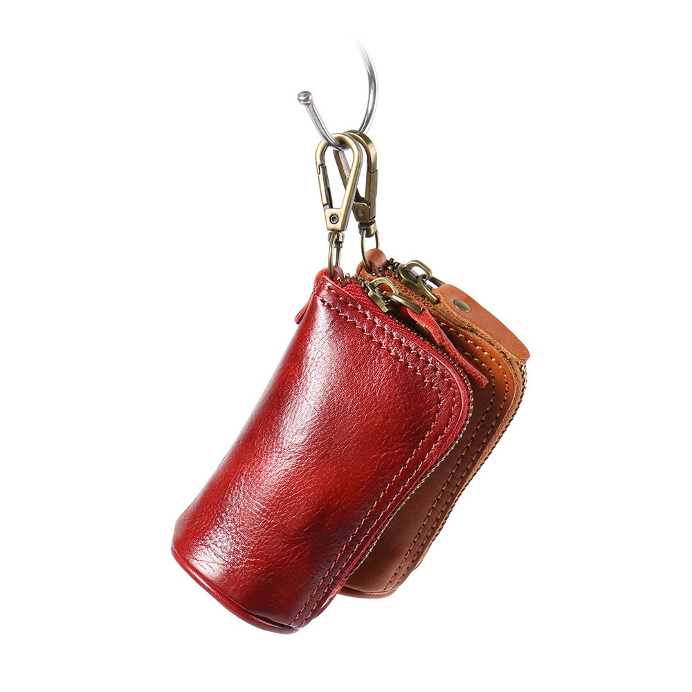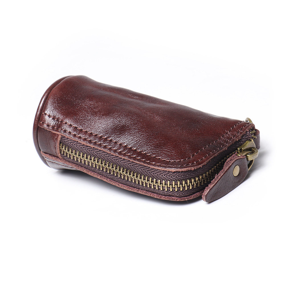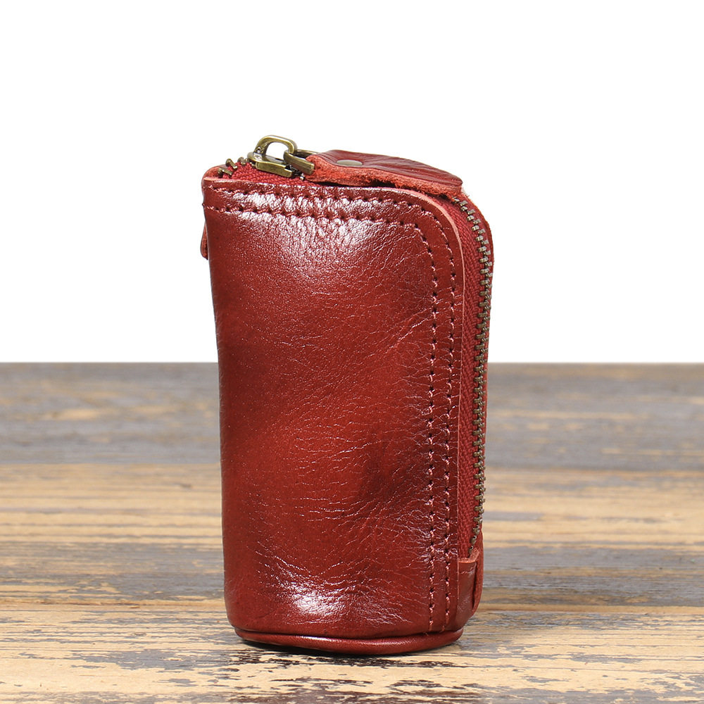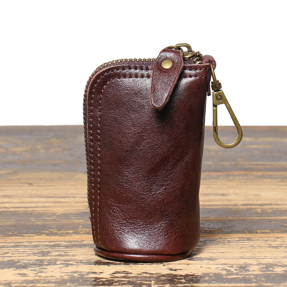 2024 New Vintage Genuine Leather Key Bag Handmade Vegetable Tanned Leather Coin Purse Top Layer Cowhide Car Key Storage Bag
