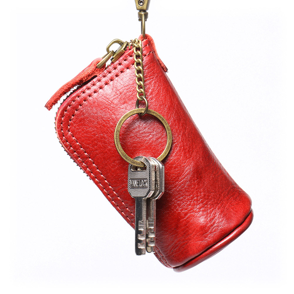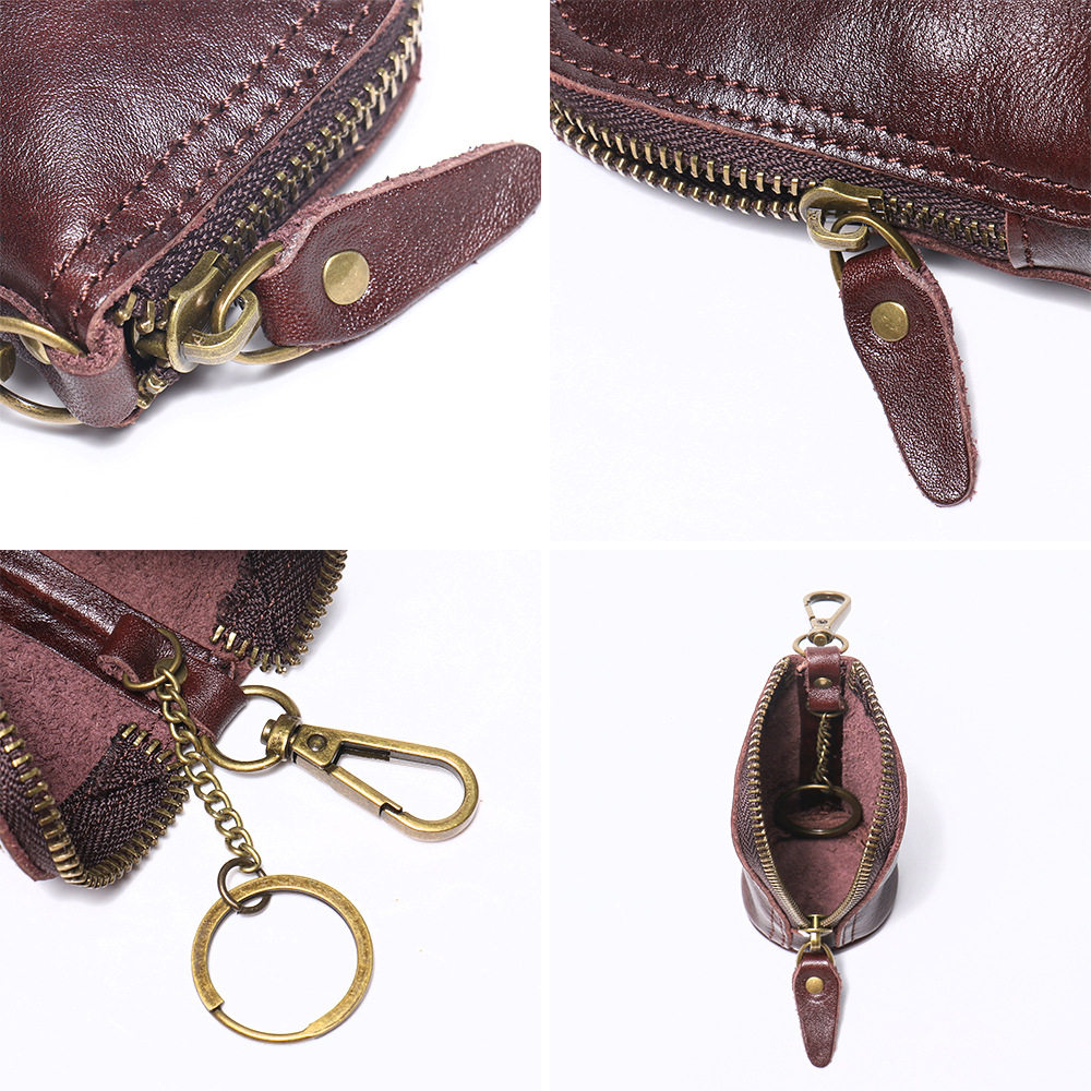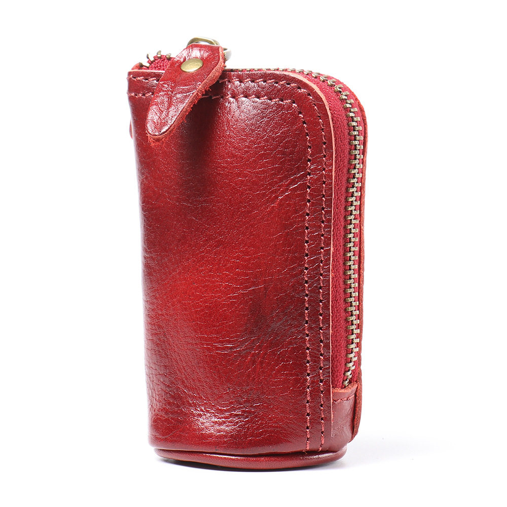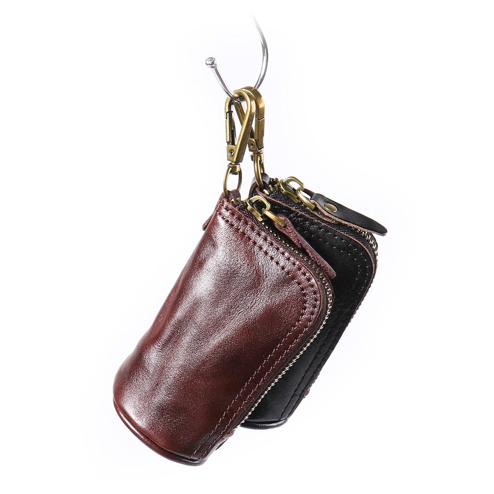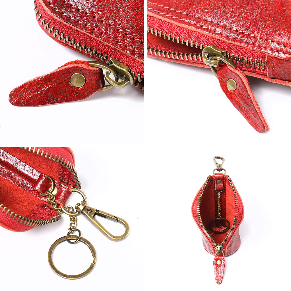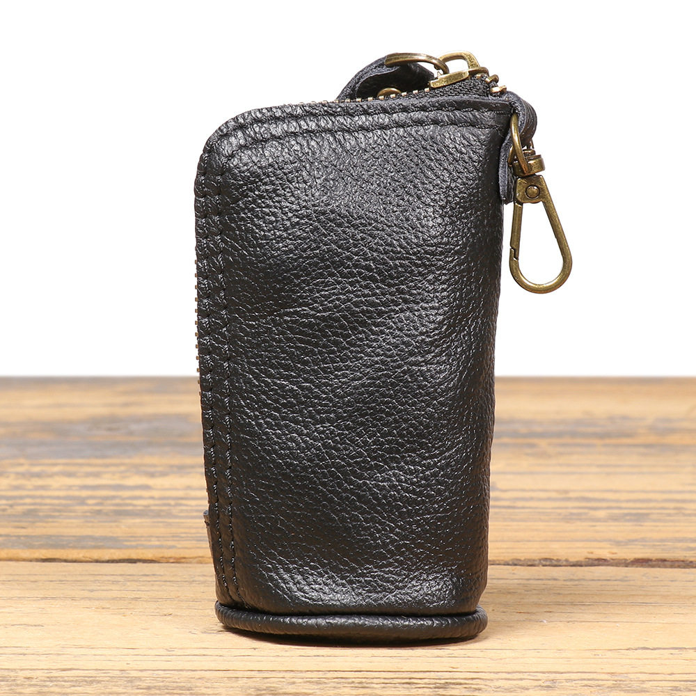 2024 New Vintage Genuine Leather Key Bag Handmade Vegetable Tanned Leather Coin Purse Top Layer Cowhide Car Key Storage Bag