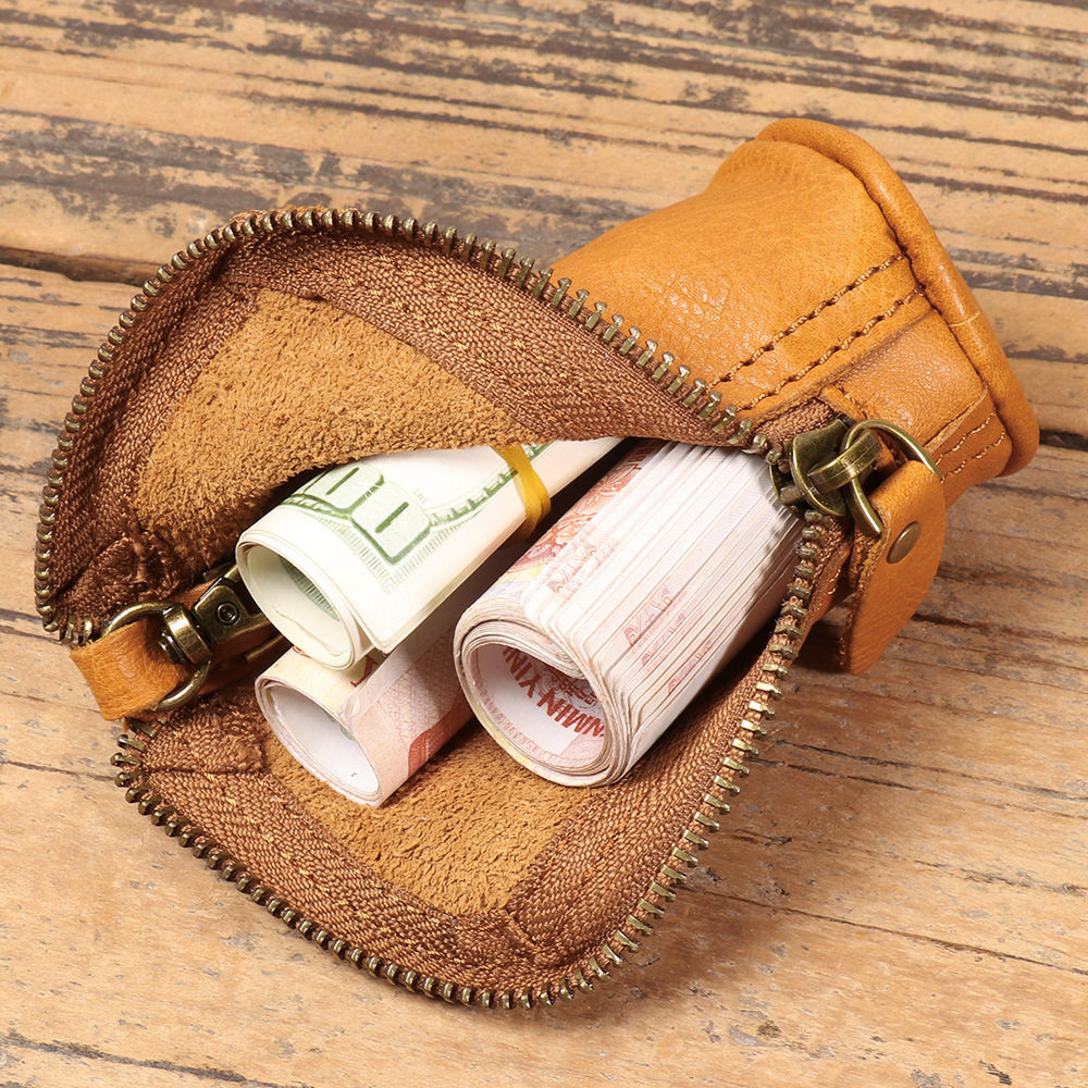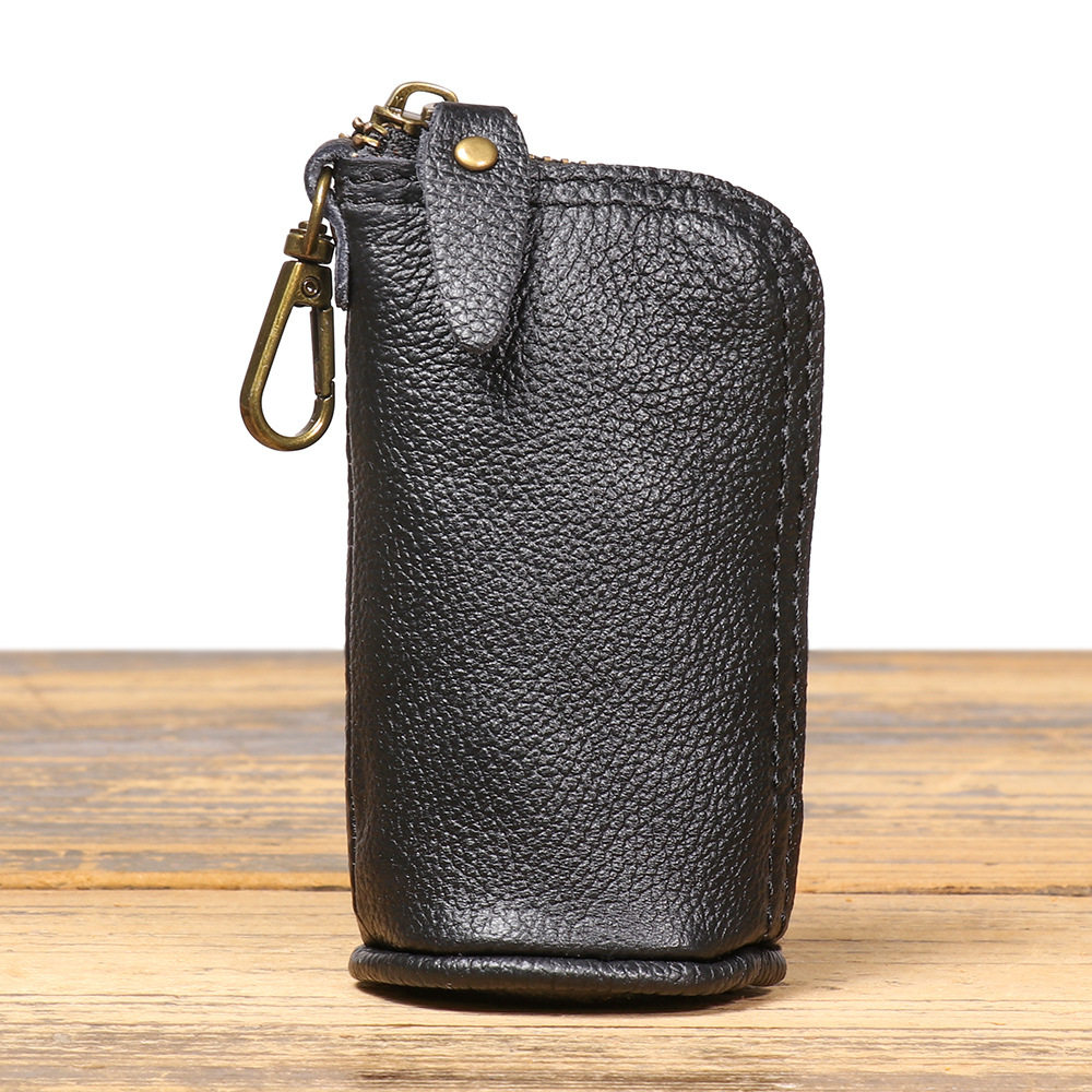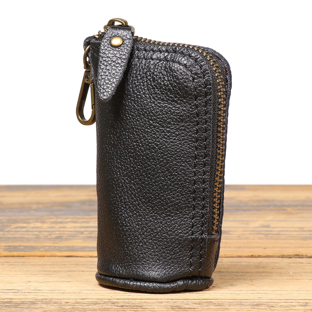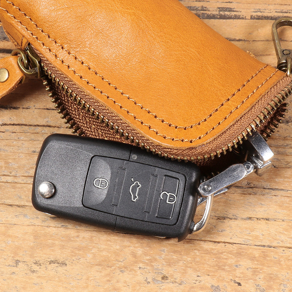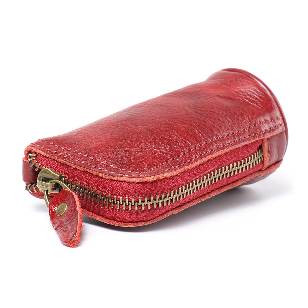 2024 New Vintage Genuine Leather Key Bag Handmade Vegetable Tanned Leather Coin Purse Top Layer Cowhide Car Key Storage Bag
