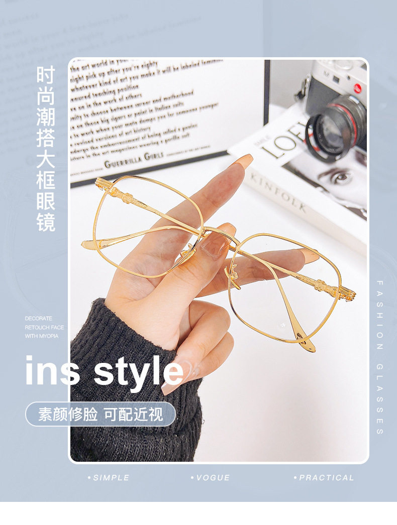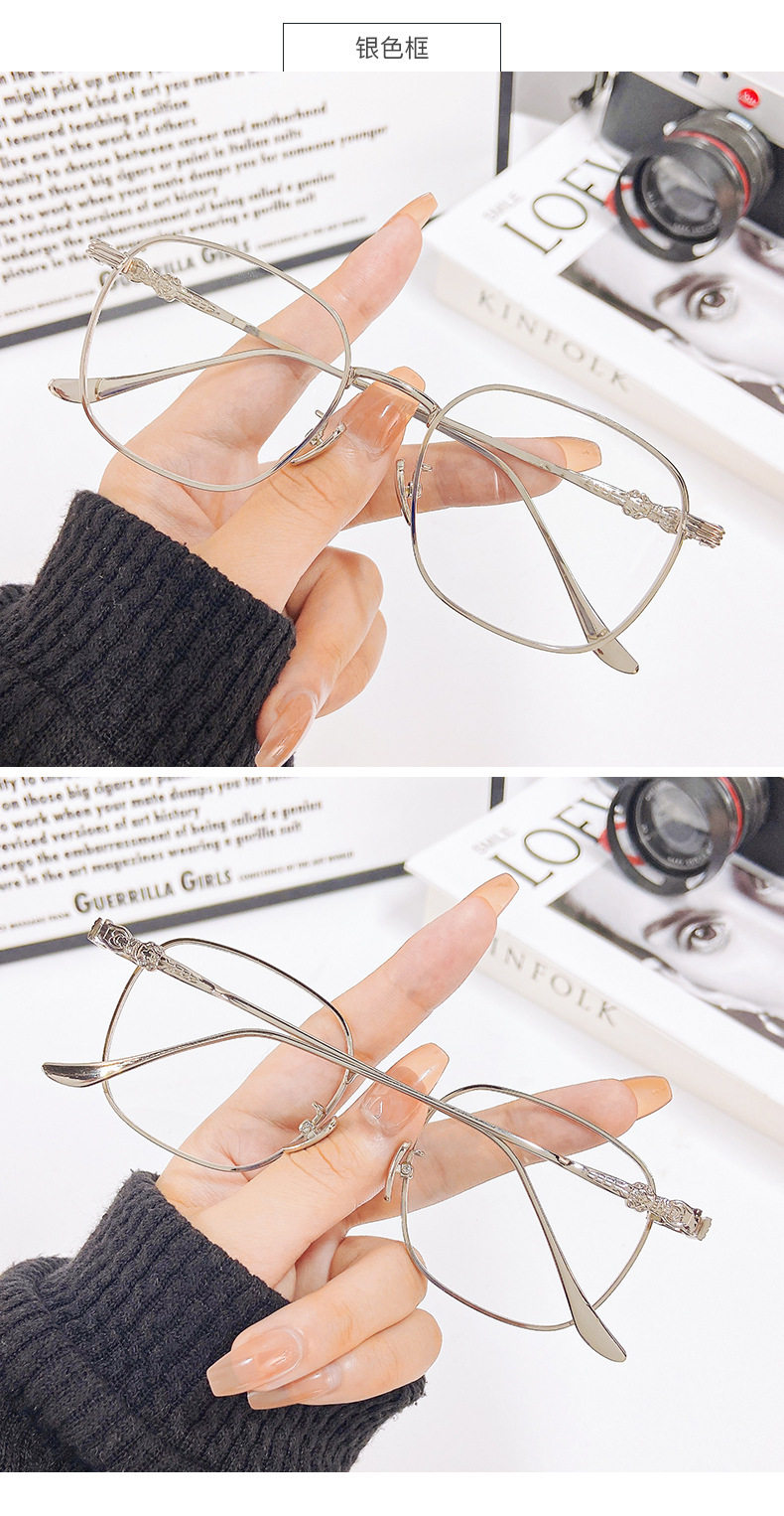 New Fashion Color-Changing Myopia Glasses Men's Large Frame Metal Frame Cream Anti-Blue Glasses Women's Cyber Celebrity Glasses Frame