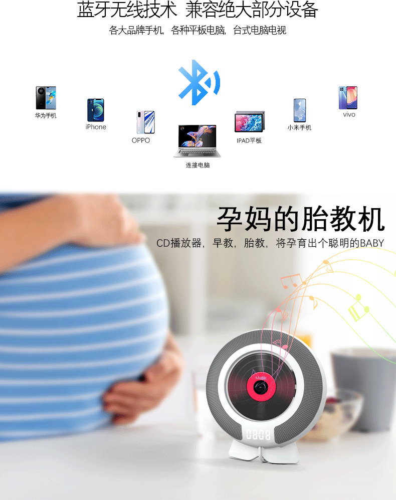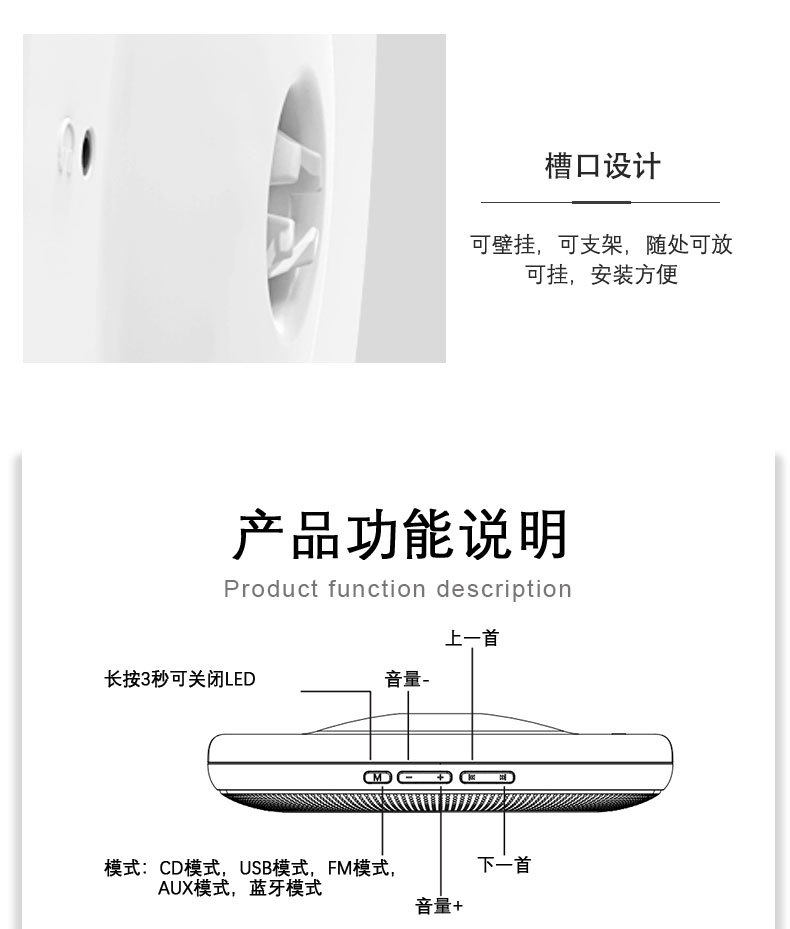 Cross-Border Household Wall-Mounted Cd Player, Cd Prenatal Education Machine for Pregnant Mothers, Children's Early Education Learning Bluetooth Cd Player Wholesale