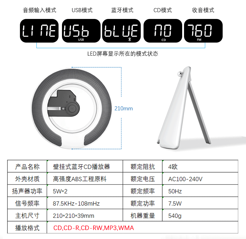 | Playback format | CD、CD-R、CD-RW、WMA、MP3 |