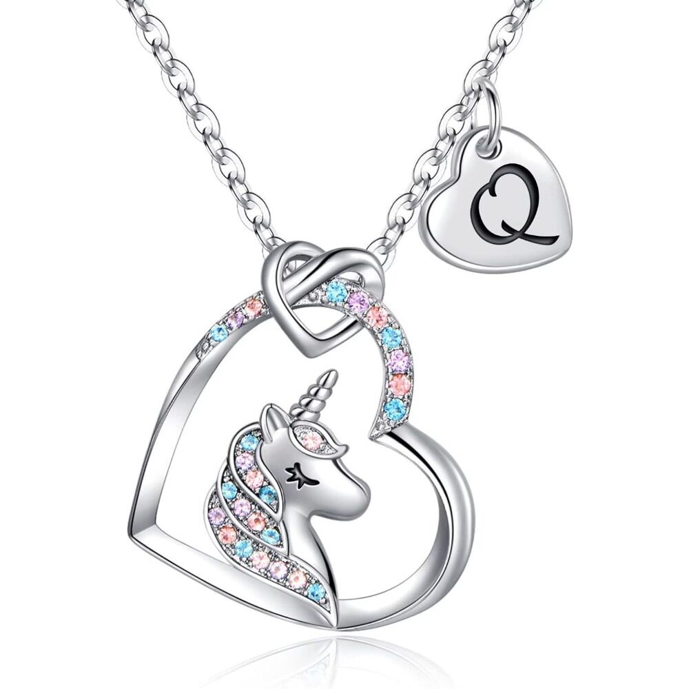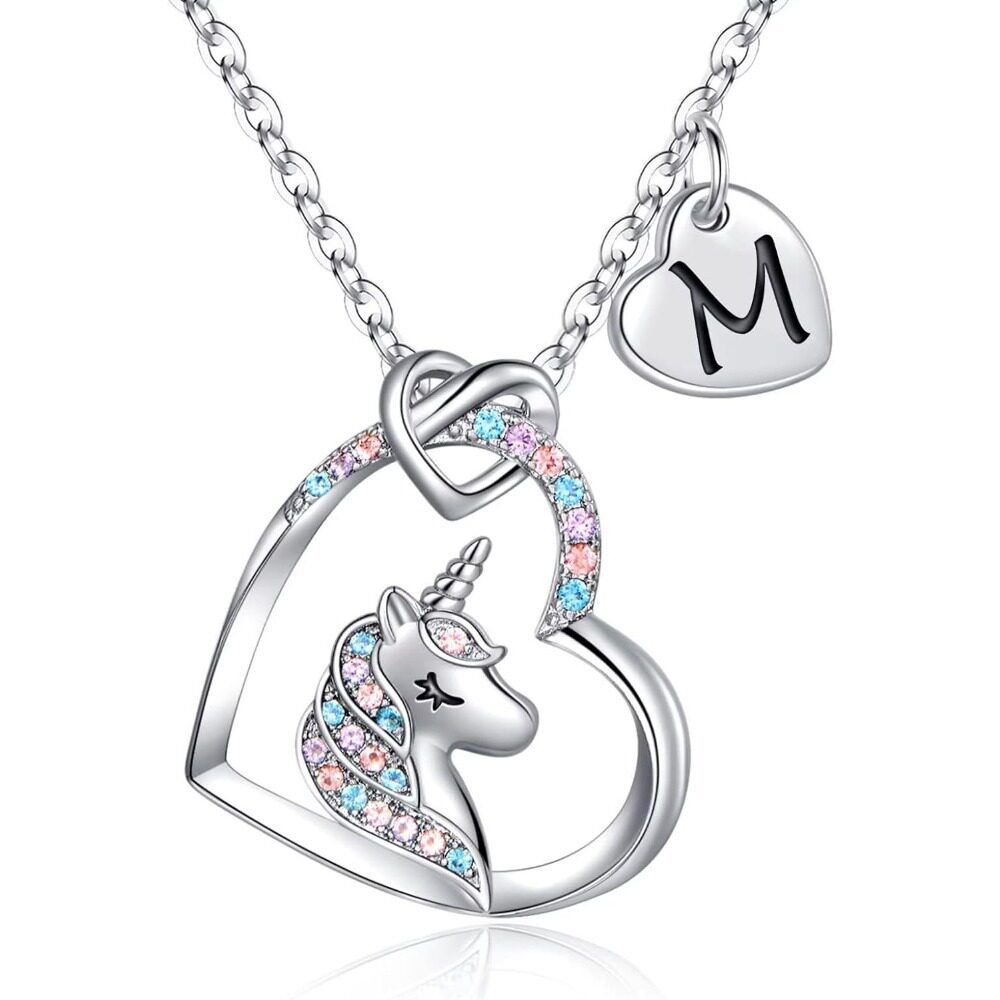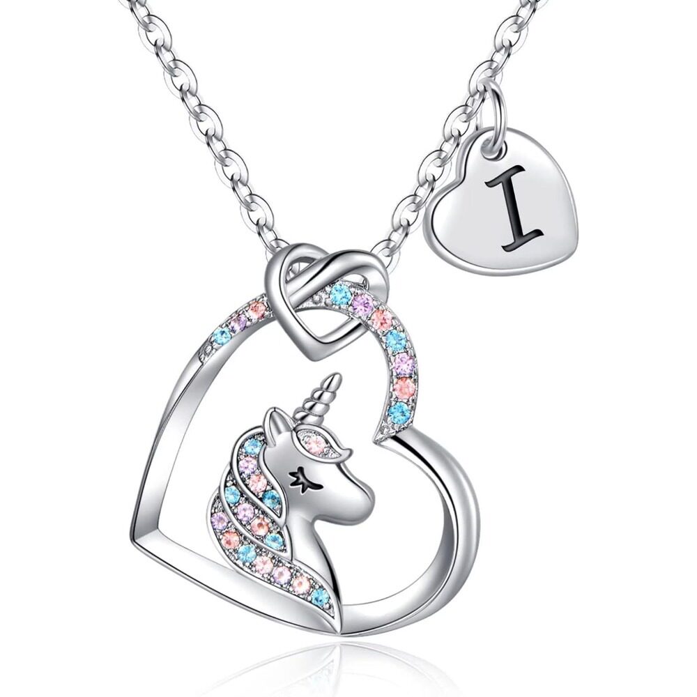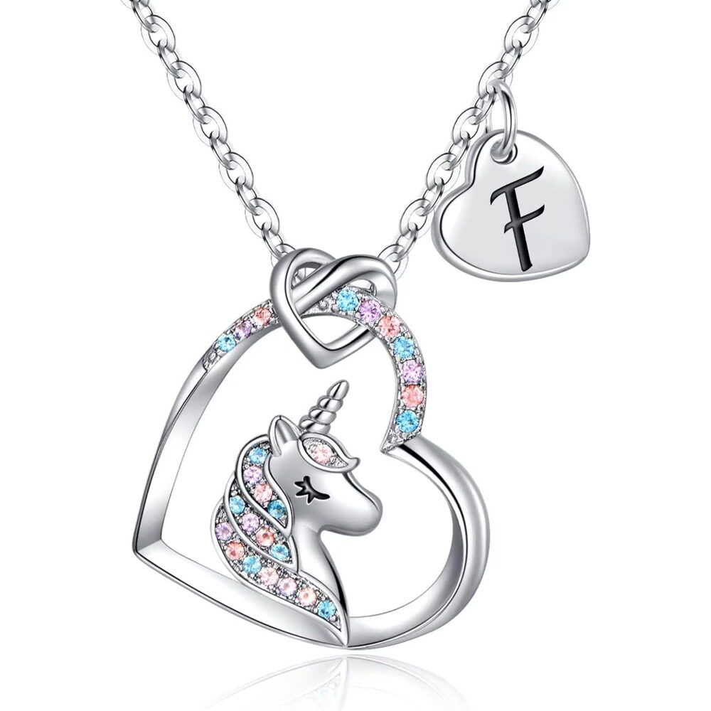 Europe and the United States cross-border hot 26 letters color zircon copper material love pendant children's jewelry unicorn necklace