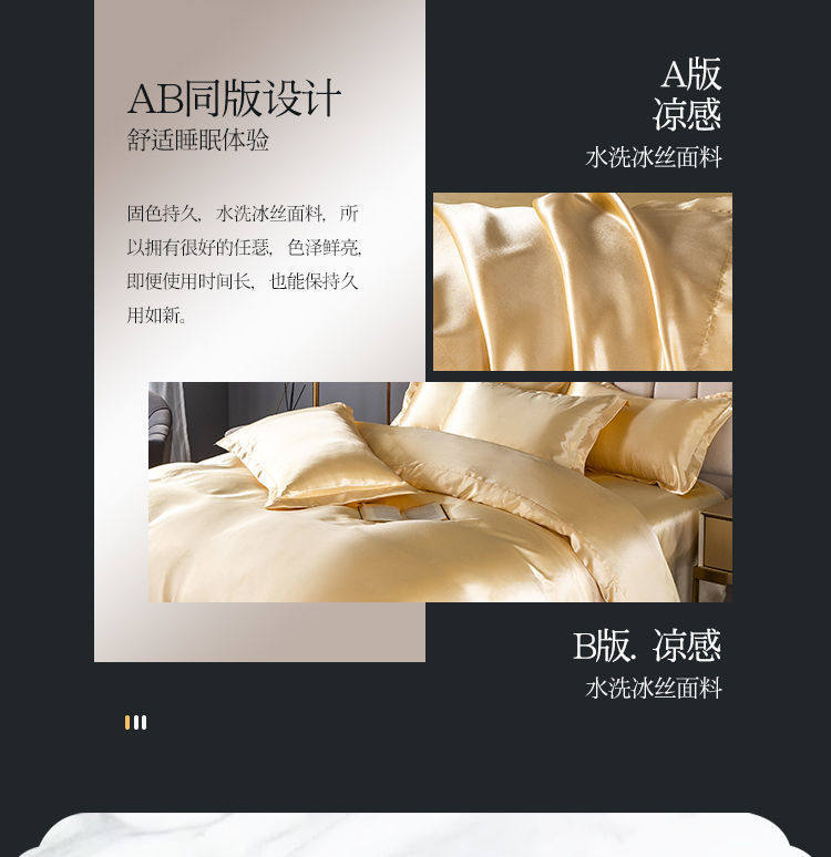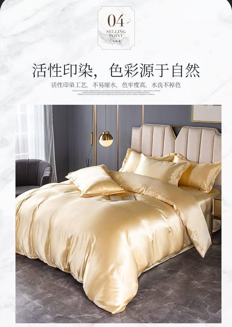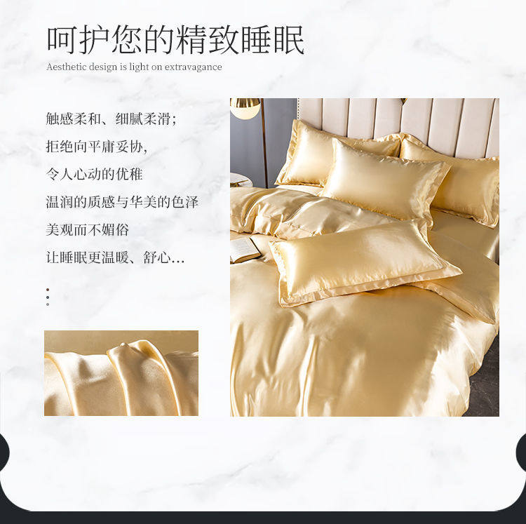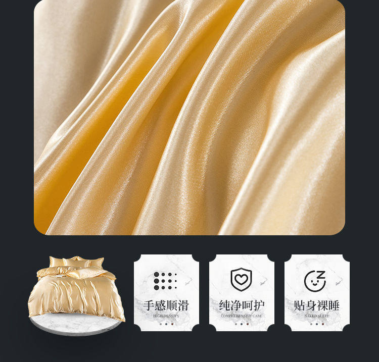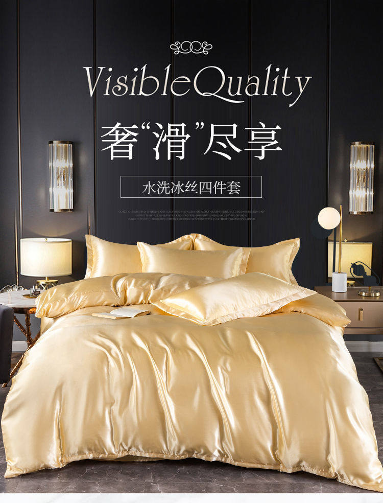 Summer ice silk four-piece quilt cover bedding silky black quilt cover student bed hat three-piece set wholesale