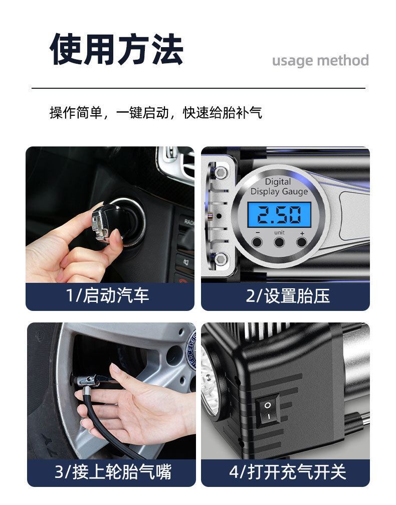 On-board air pump multifunctional portable electric dual-cylinder high-pressure tire air pump for high-power cars for automobiles
