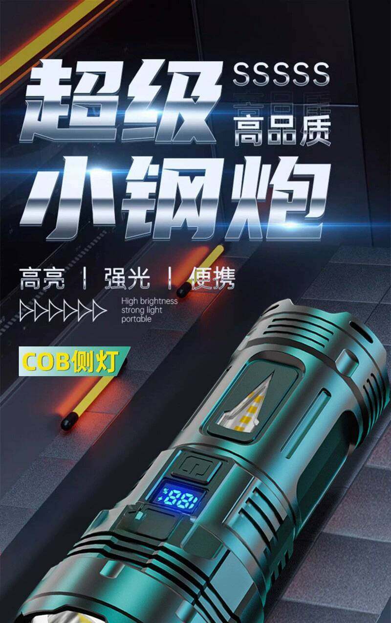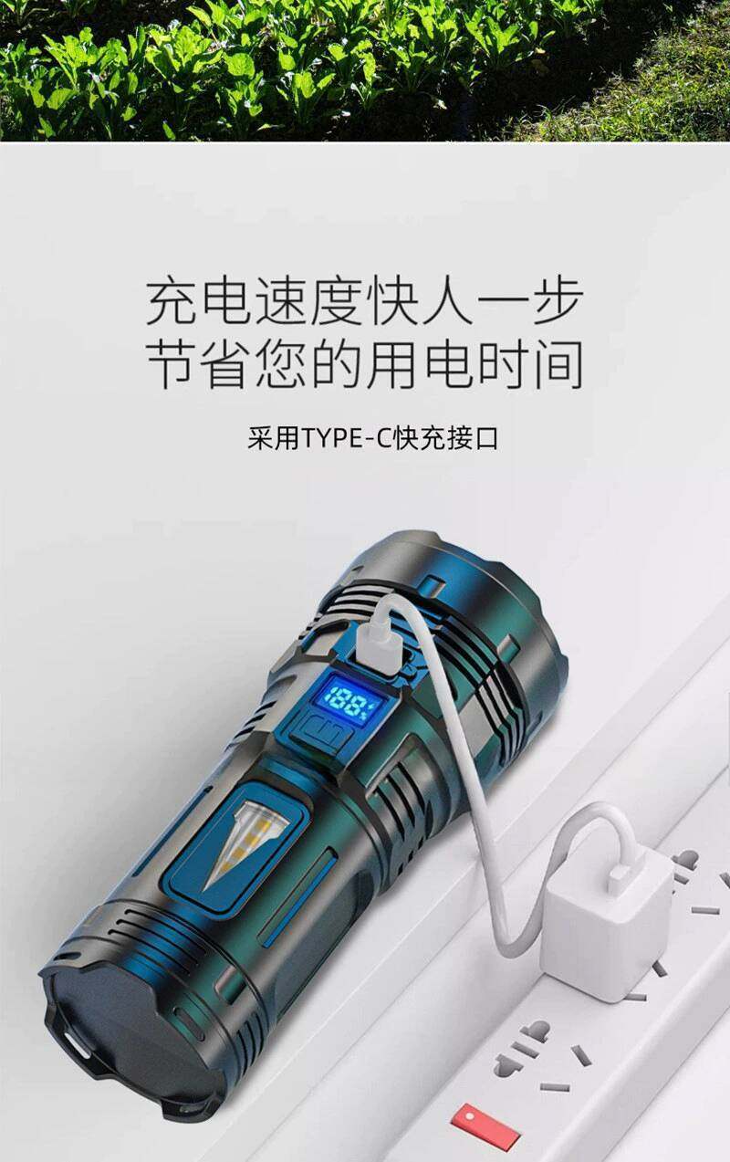 New Hot Sale Bright Seven-core Flashlight Multifunctional TYPE-C Charging Strong Light COB Side Light Patrol Searchlight