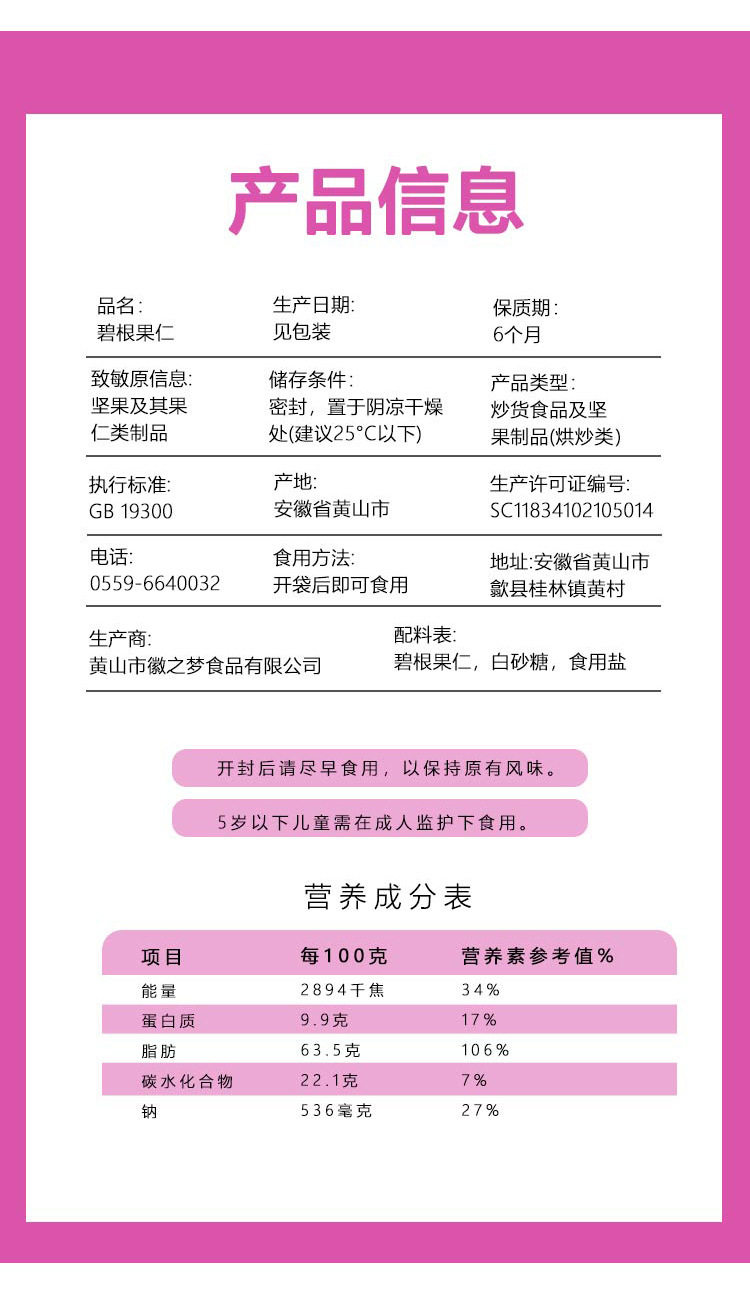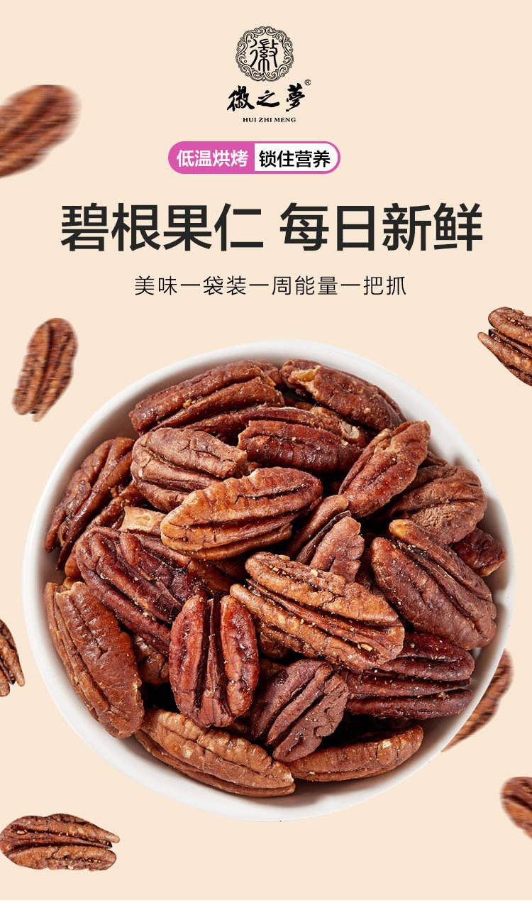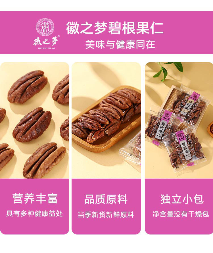 | Packaging specifications | Half a pound of pecan nuts, 250 grams, about 8 packs, early adopters, 9% of people chose it,Pecan nuts 1kg 500g 16 packs or so hot-selling model 61% of people chose,Pecan nuts 2kg 1000g 32 packs recommended by about 23% of people,Pecan nuts 3kg 1500g 48 packs or so family size 3% people chose,Pecan nuts 6kg 3000g about 96 packs in a box 4% people chose |
