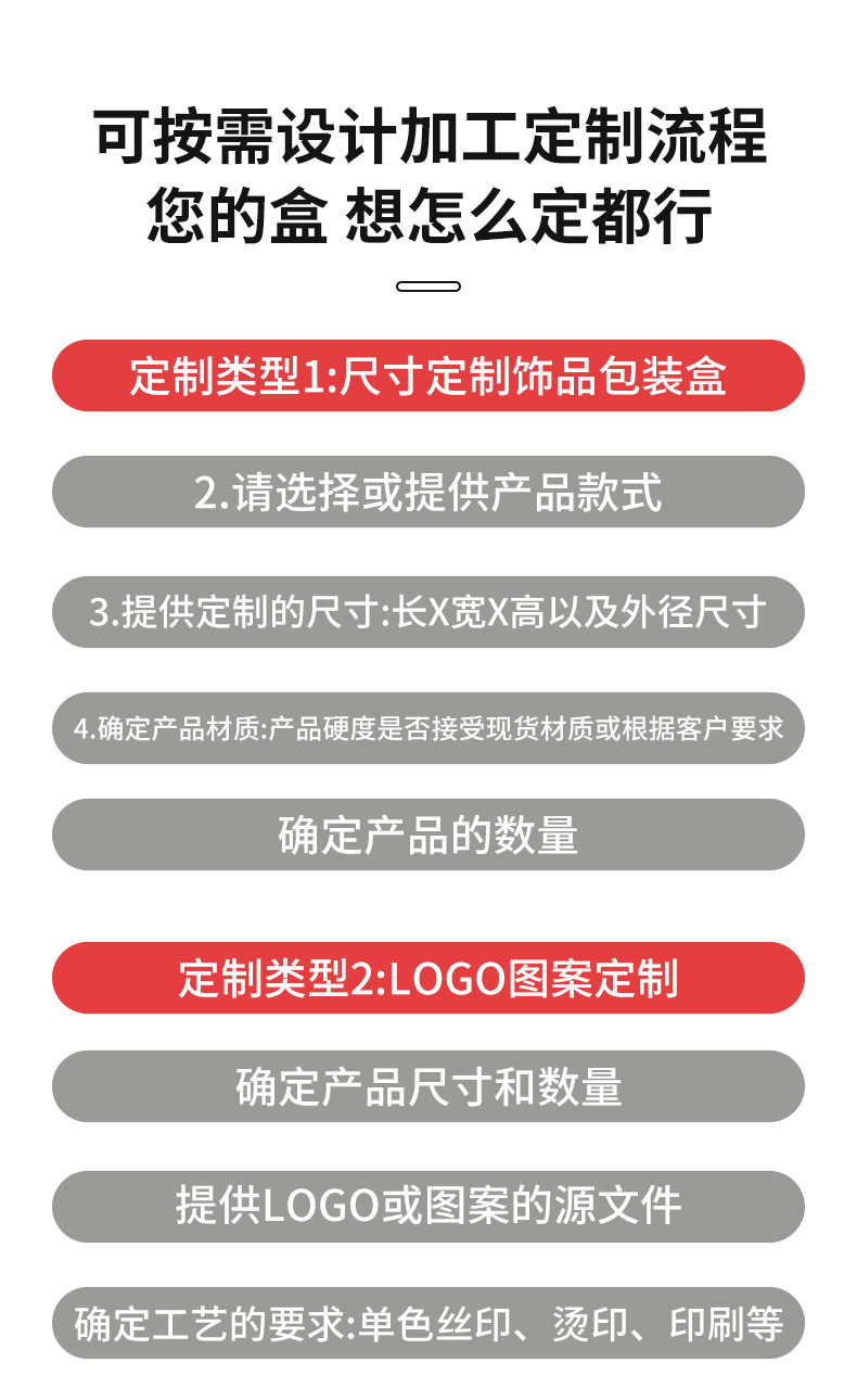 | Specifications and models | Right-angle flannel printed sapphire blue ring box 6*6; No.1,Right-angle flannel printed sapphire blue pendant box 7*8; No.1,Right-angle flannel printed sapphire blue pendant box 7*10; No.1,Right-angle flannel printed sapphire small bracelet box 9*9; No.1,Right-angle flannel printed sapphire blue bracelet box 10*10; No.1,Right-angle flannel printed sapphire blue necklace box 6*24.5; No.1,Right-angle flannel printed big red ring box 6*6; No.1,Right-angle flannel printed big red pendant box 7*8; No.1,Right-angle flannel printed big red pendant box 7*10; No.1,Right-angle flannel printed big red small bracelet box 9*9; No.1,Right-angle flannel printed big red bracelet box 10*10; No.1,Right-angle flannel printed big red necklace box 6*24.5; No.1,Right-angle flannel printed gray ring box 6*6; No.1,Right-angle flannel printed gray pendant box 7*8; No.1,Right-angle flannel printed gray pendant box 7*10; No.1,Right-angle flannel printed gray small bracelet box 9*9; No.1,Right-angle flannel printed gray bracelet box 10*10; No.1,Right-angle flannel printed gray necklace box 6*24.5; No.1,Right-angle flannel printed brown ring box 6*6; No.1,Right-angle flannel printed brown pendant box 7*8; No.1,Right-angle flannel printed brown pendant box 7*10; No.1,Right-angle flannel printed brown small bracelet box 9*9; No.1,Right-angle flannel printed brown bracelet box 10*10; No.1,Right-angle flannel printed brown necklace box 6*24.5; No.1,Right-angle flannel printed rose red ring box 6*6; No.1,Right-angle flannel printed rose red pendant box 7*8; No.1,Right-angle flannel printed rose red pendant box 7*10; No.1,Right-angle flannel printed rose red small bracelet box 9*9; No.1,Right-angle flannel printed rose red bracelet box 10*10; No.1,Right-angle flannel printed rose red necklace box 6*24.5; No.1,Right-angle flannel printed jujube red ring box 6*6; No.1,Right-angle flannel printed jujube red pendant box 7*8; No.1,Right-angle flannel printed jujube red pendant box 7*10; No.1,Right-angle flannel printed jujube small bracelet box 9*9; No.1,Right-angle flannel printed jujube large bracelet box 10*10; No.1,Right-angle flannel printed jujube necklace box 6*24.5; No.1,Right-angle flannel printed purple ring box 6*6; No.1,Right-angle flannel printed purple pendant box 7*8; No.1,Right-angle flannel printed purple pendant box 7*10; No.1,Right-angle flannel printed purple small bracelet box 9*9; No.1,Right-angle flannel printed purple bracelet box 10*10; No.1,Right-angle flannel printed purple necklace box 6*24.5; No.1 |