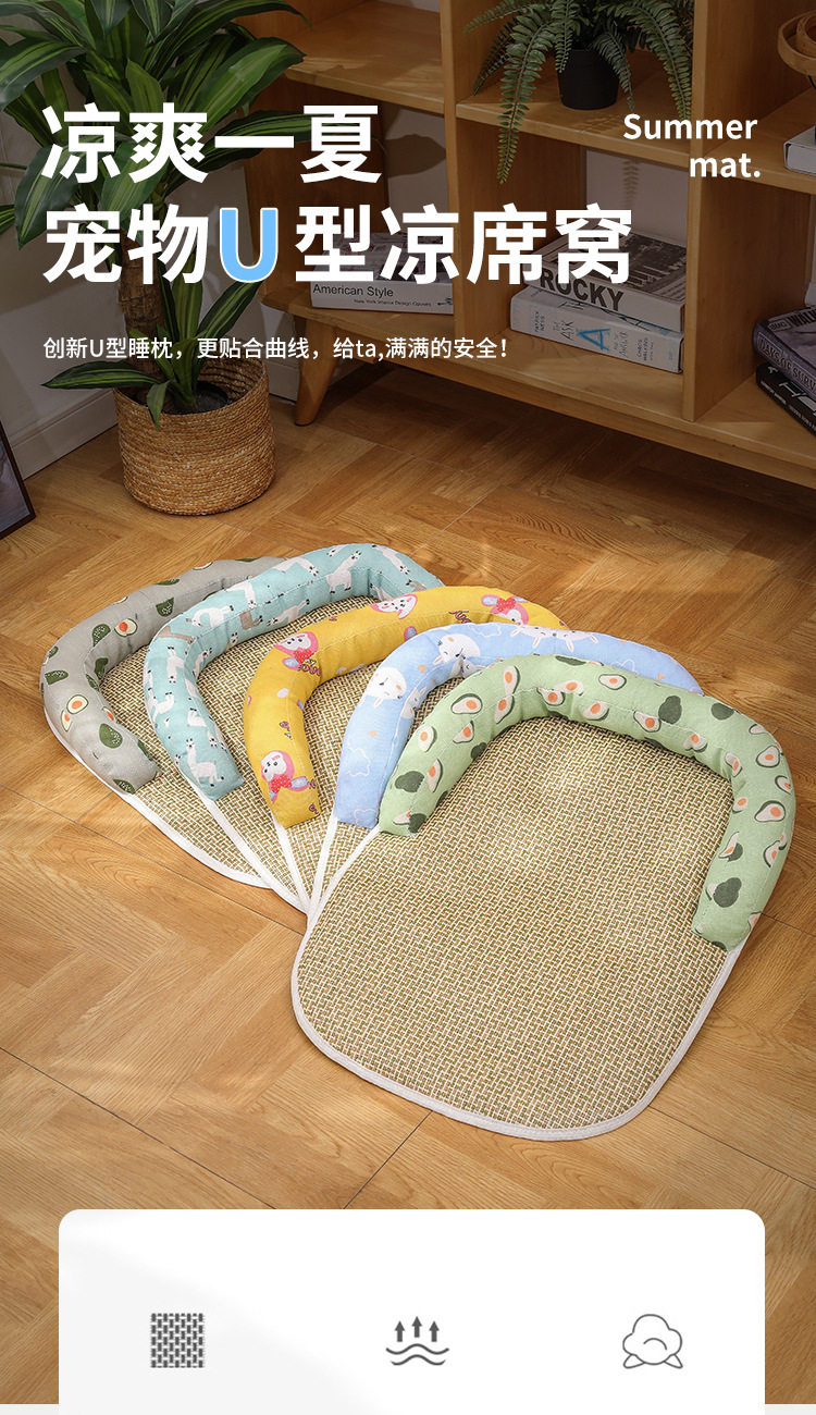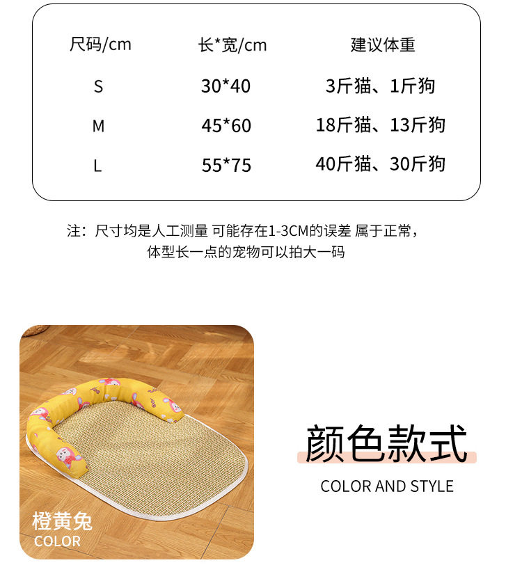 Summer Pet Mat Dog Rattan Nest Ice Sleeping Mat Ice Mat Cats and Dogs Nest Mat Summer Supplies Anti-slip Bottom