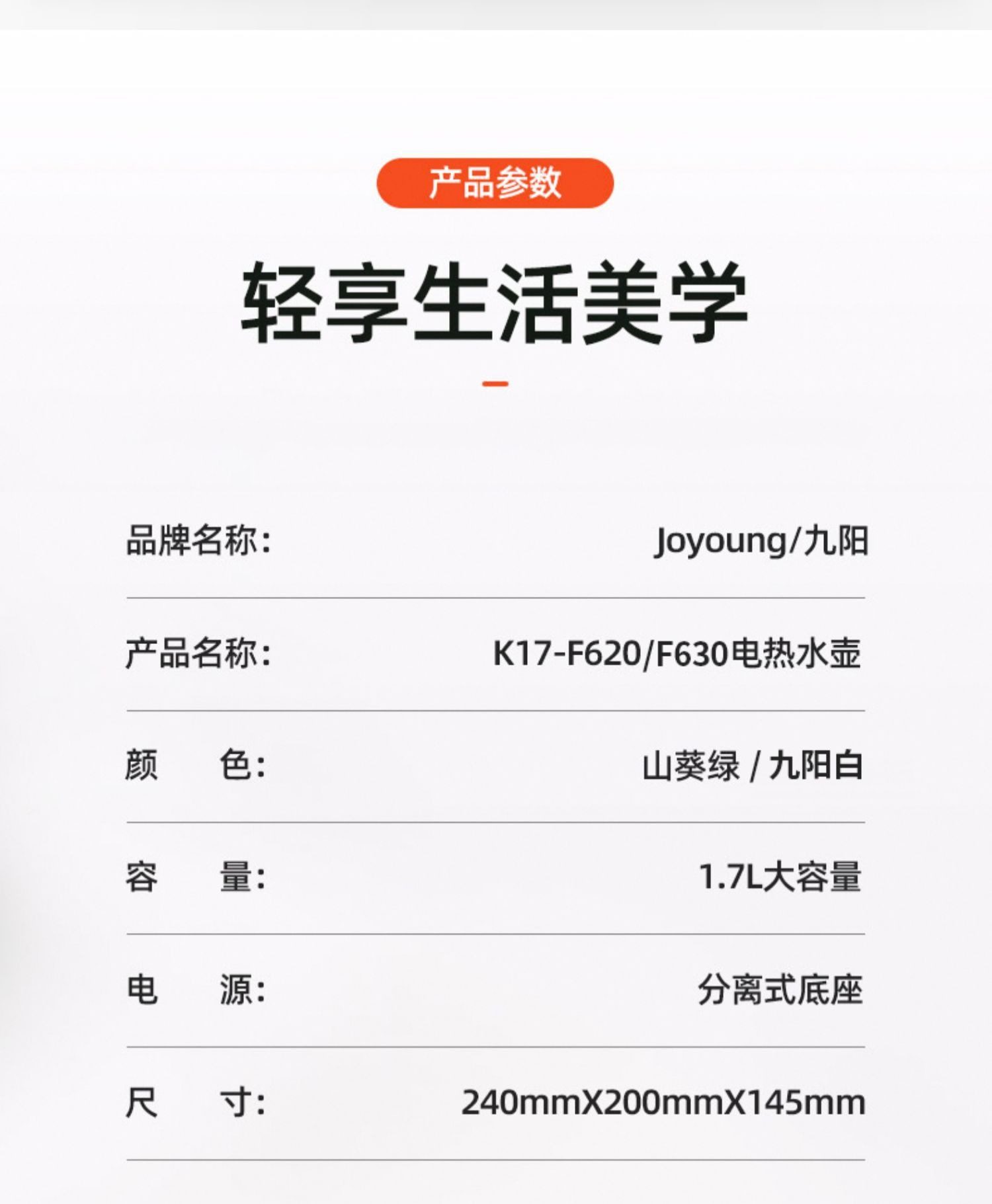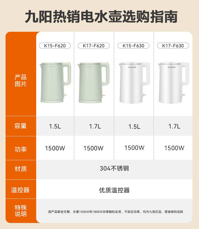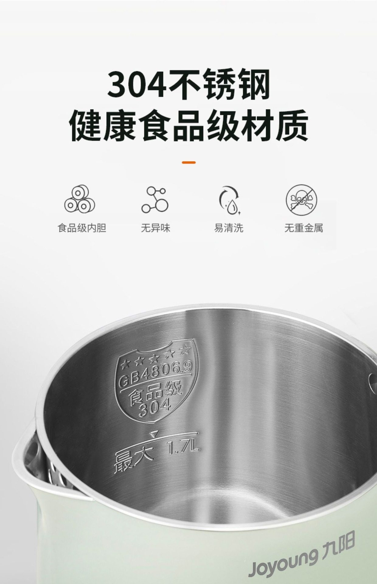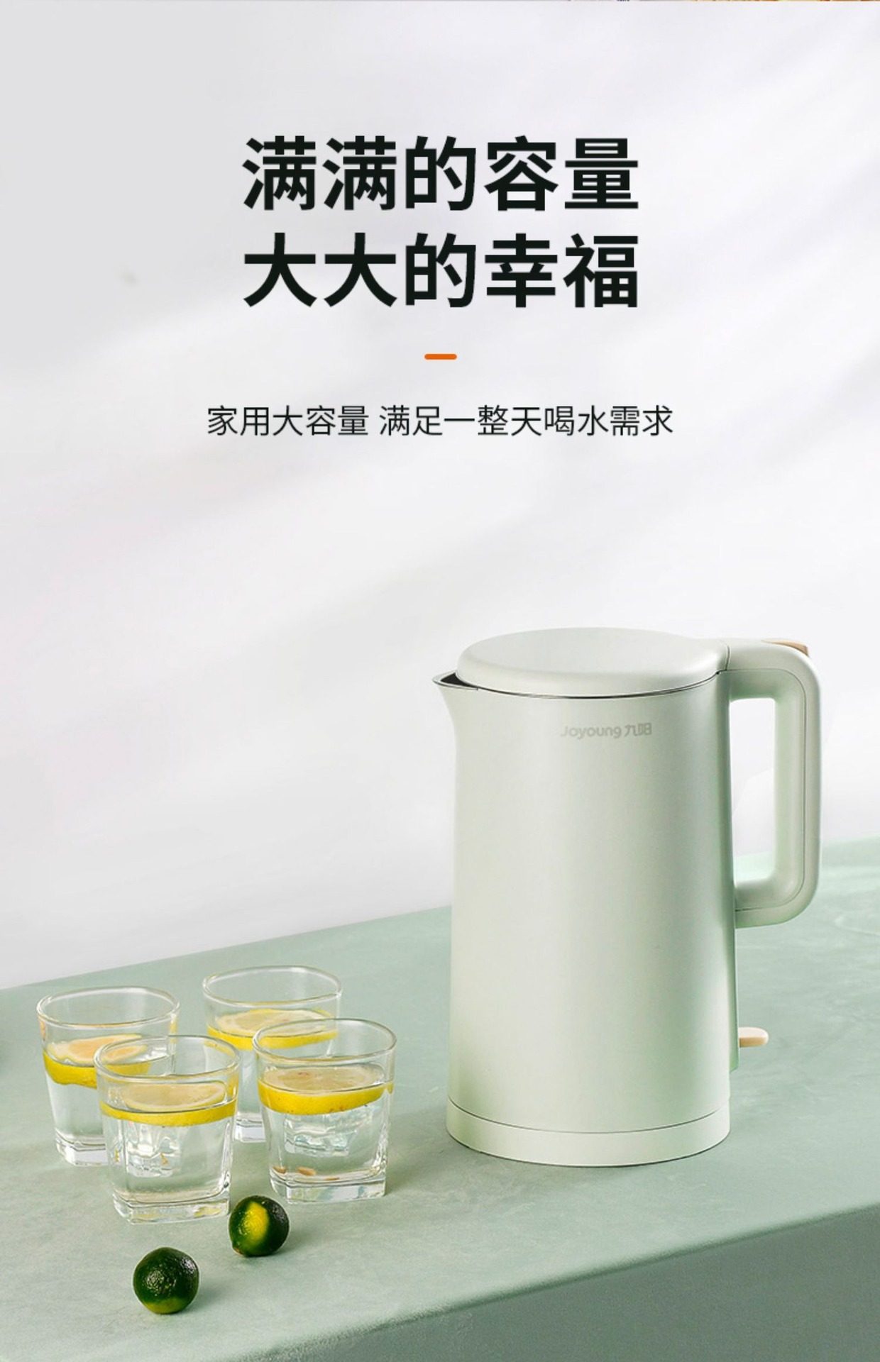 Joyoung Electric Water Kettle K17-F630 Household 1.7L Large Capacity 304 Stainless Steel Liner Seamless Liner Double Layer