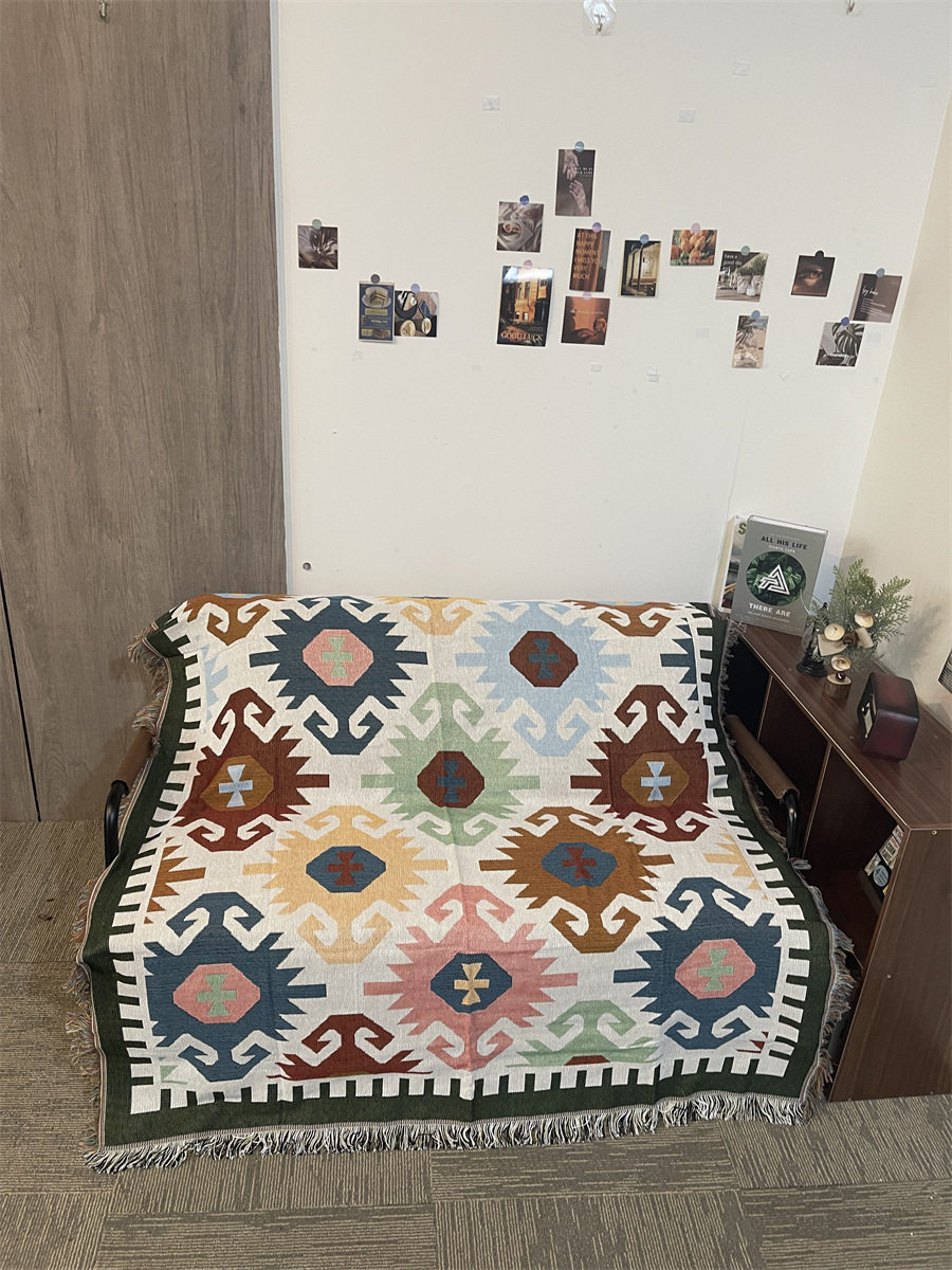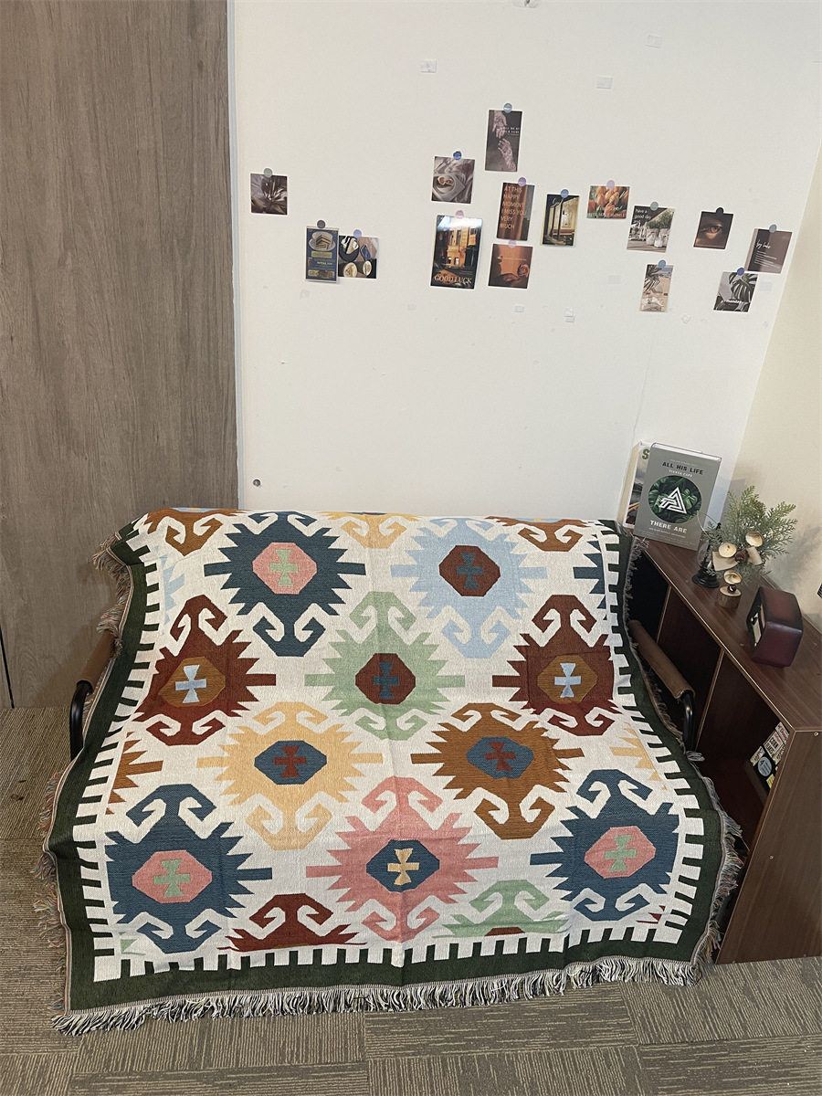Color Geometric Features Blanket Sofa Cover Blanket Outdoor Camping Tent Cushion Blanket Cotton Blanket Support Wholesale