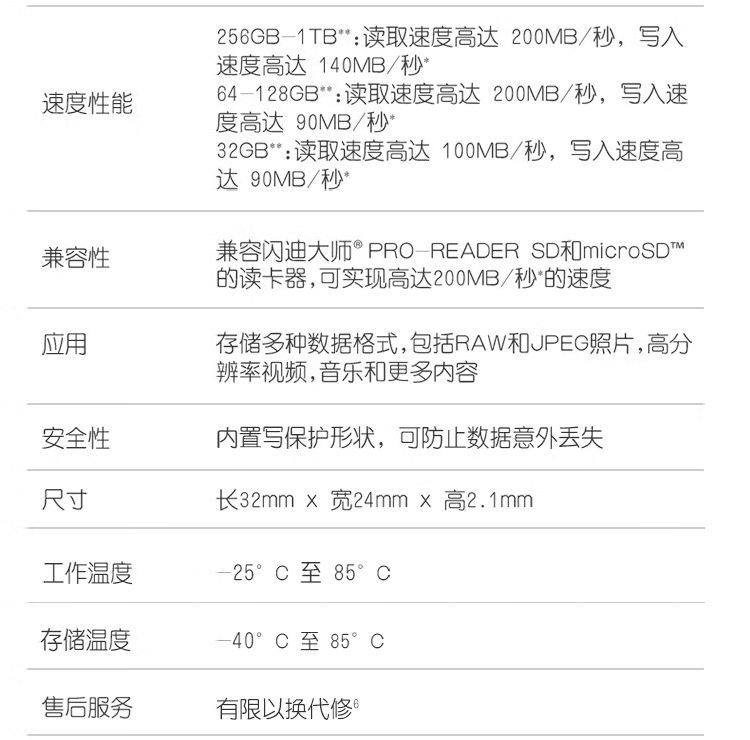| Reading and writing speed | Write speed 90MB/s read speed 200MB/s |