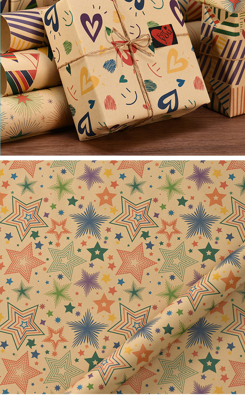 Amazon New Vintage Kraft Wrapping Paper Valentine's Day Birthday Gift Wrapping Paper suit Wholesale