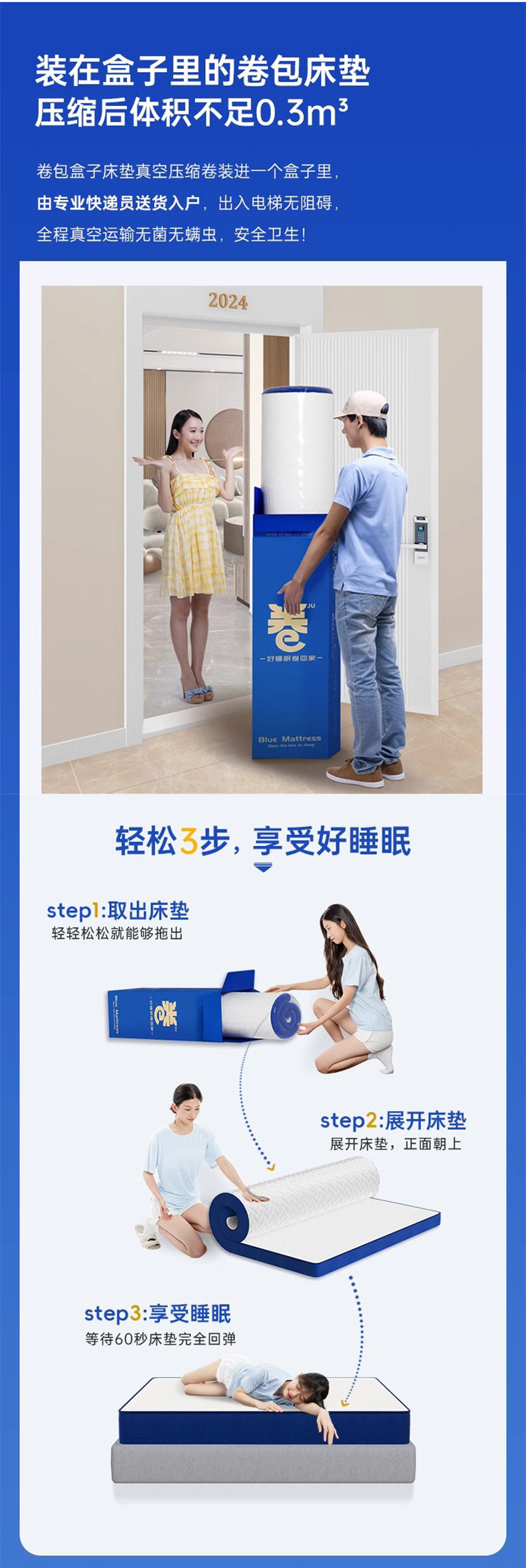 Blue Box Roll Spring Mattress Simmons Home Bedroom Latex Memory Foam Compression Spring Hotel Cushion