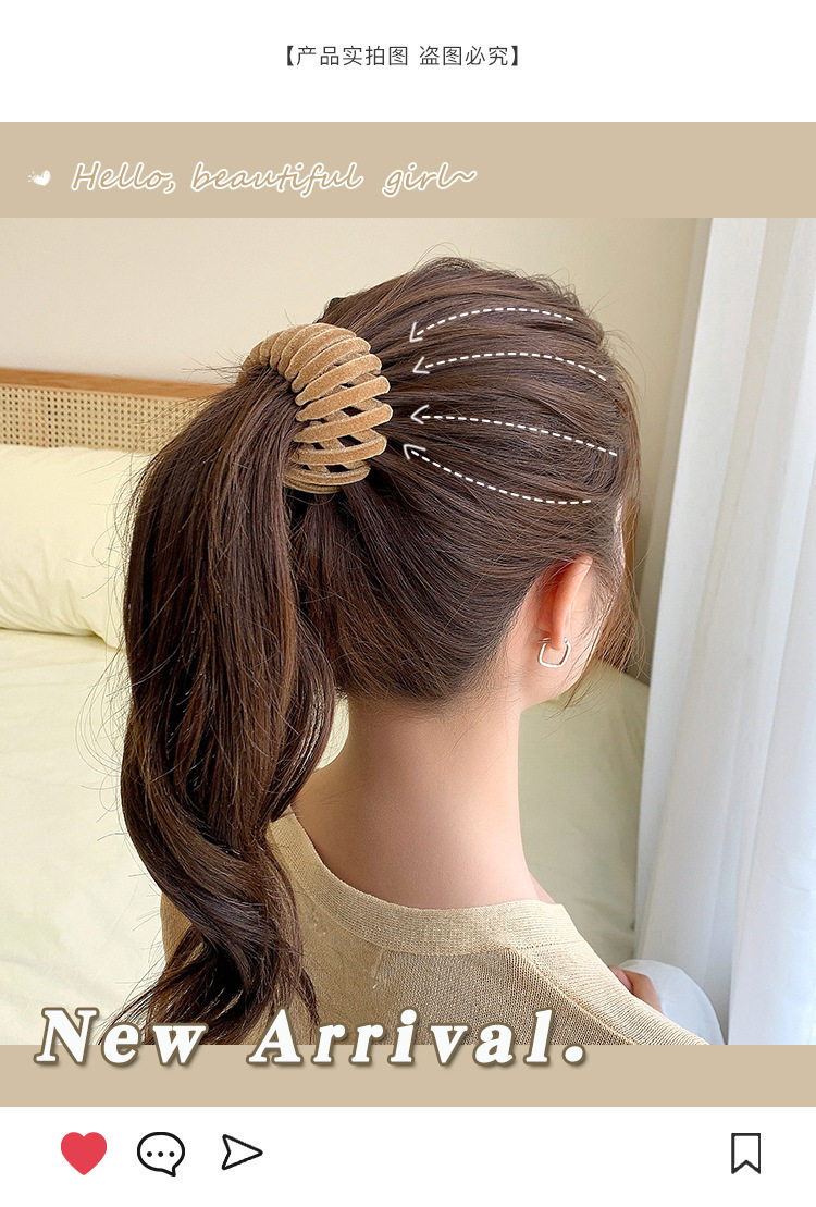 Bird's Nest Flocking Hair Machine Women's Autumn and Winter Ball Head Hair Machine Lazy Grab Clip Half-Tie Hair Fixed Hairpin Headwear
