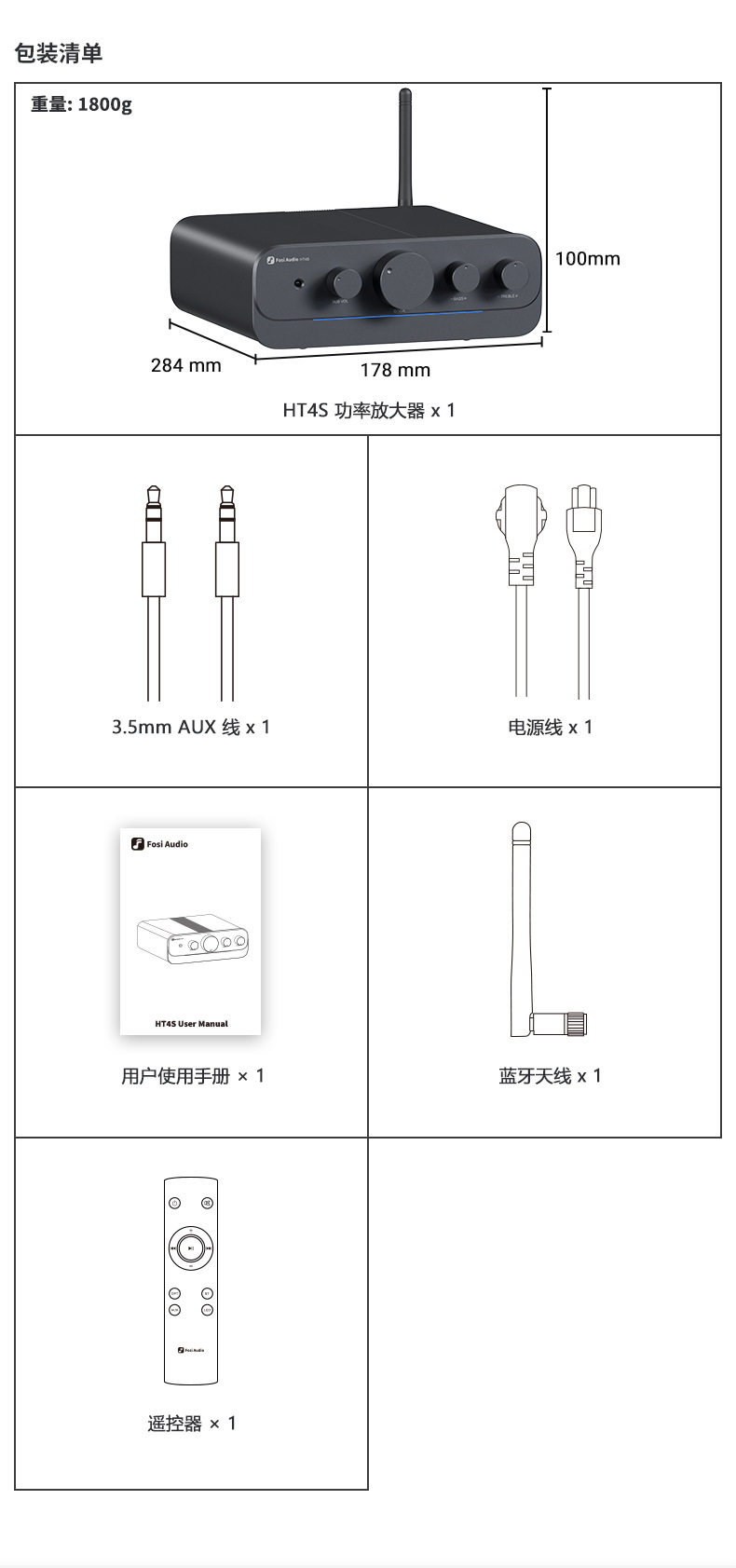 FosiAudio HT4S Bluetooth Digital Power Amplifier High Power Household Small 5.0 Channel Power Amplifier