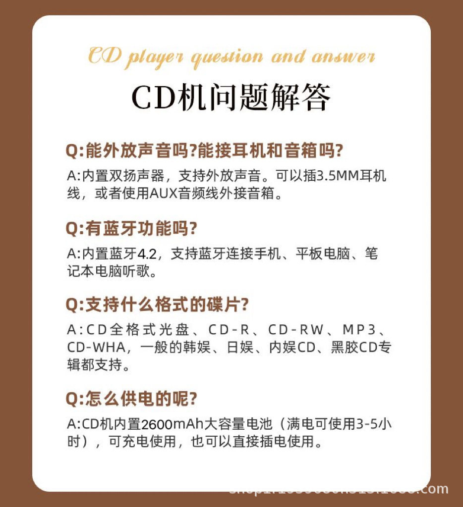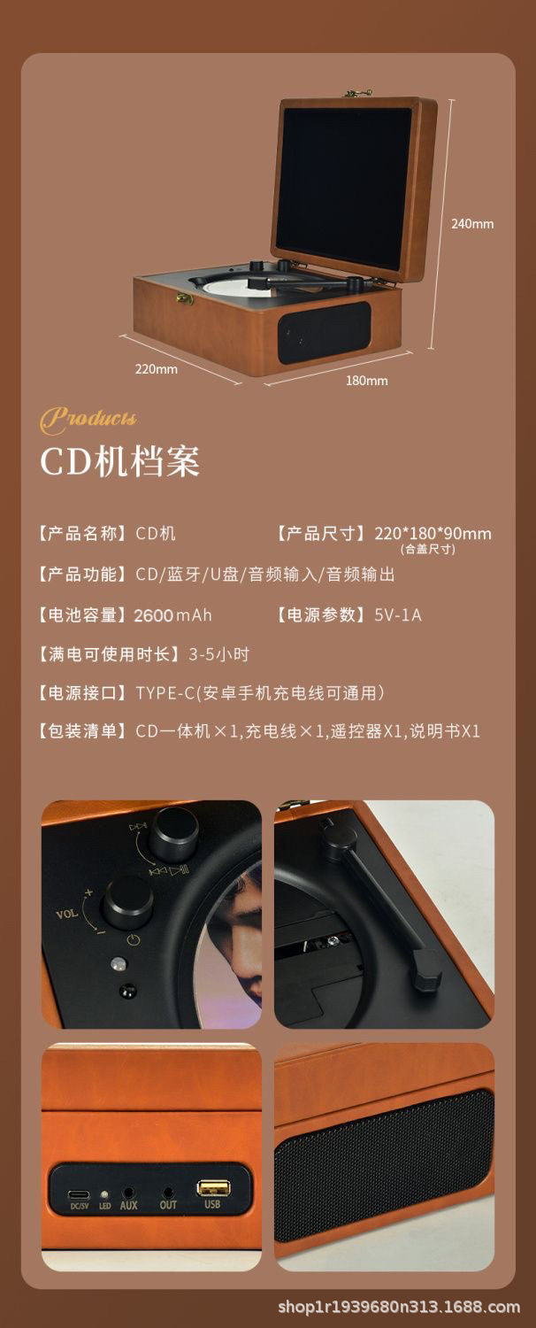 | Packing List | CD player * 1, charging line * 1, remote control manual * 1 |