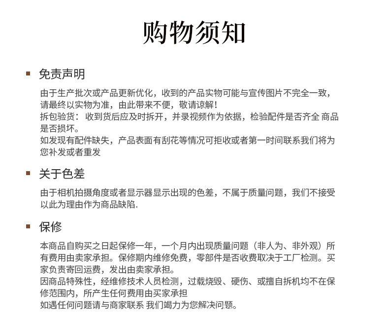 | After-sales service | Shop Three Guarantees |