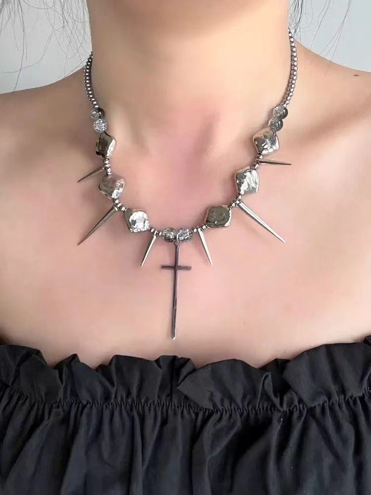 2024 new cross willow nail hip hop personality punk style necklace titanium steel irregular trend clavicle necklace