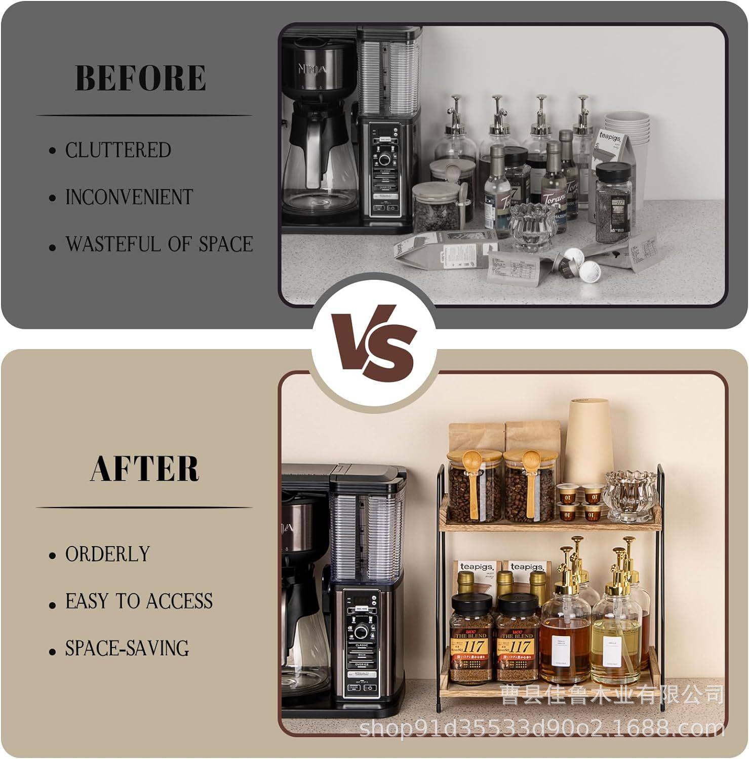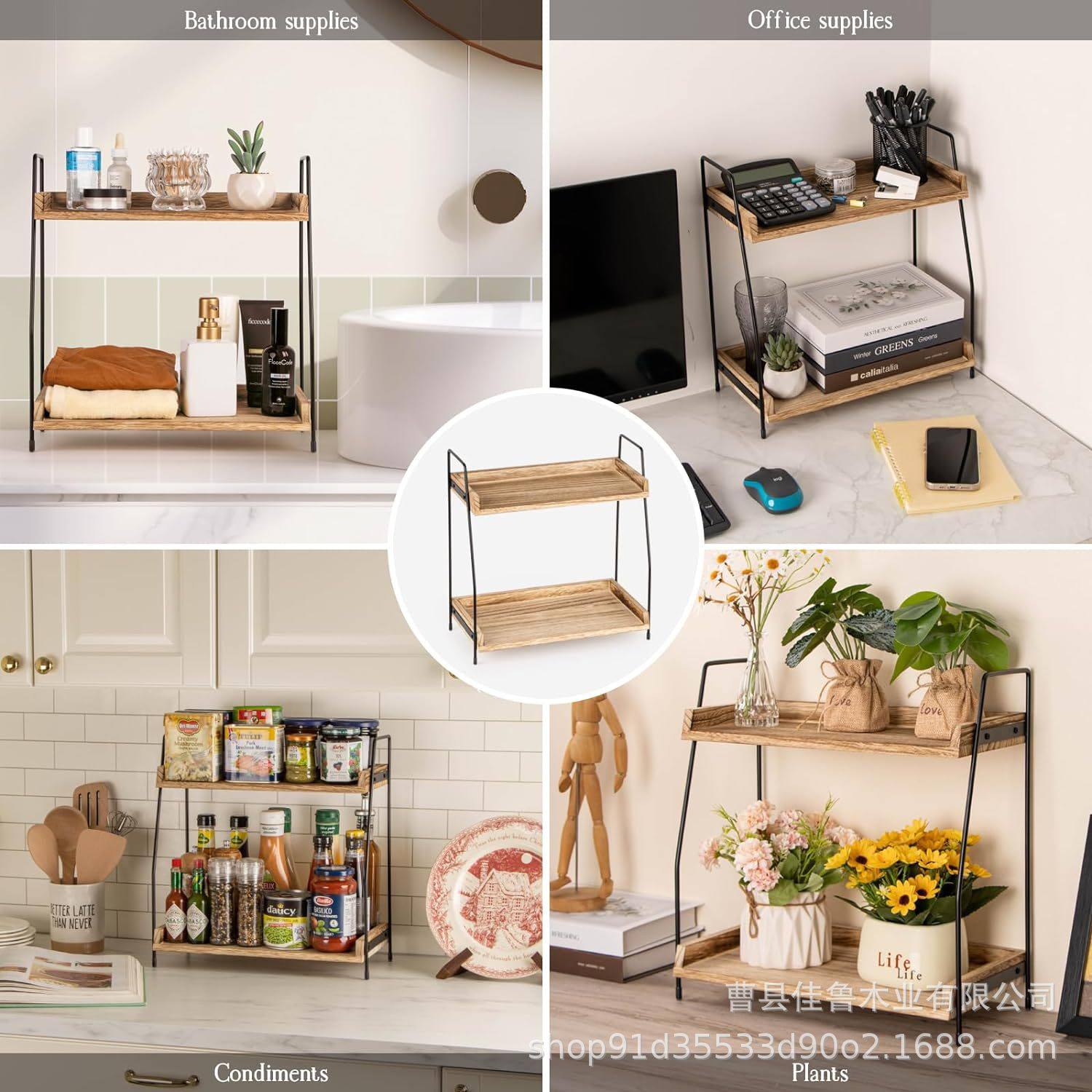 Wooden Two-Layer Storage Rack Office Tea Room Coffee Milk Tea Pot Storage Rack Bathroom Skin Care Products Flatting Rack