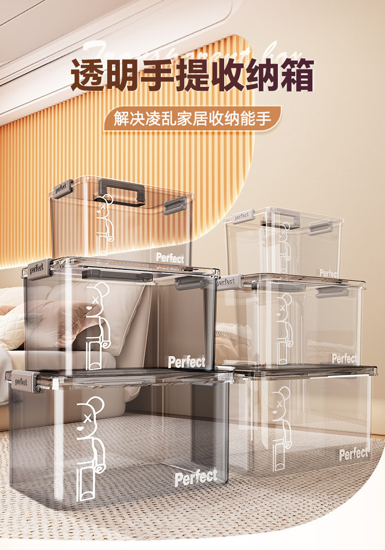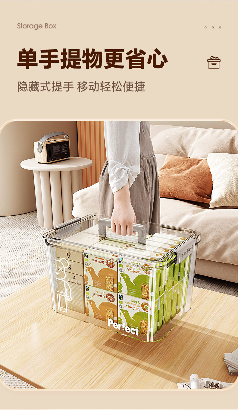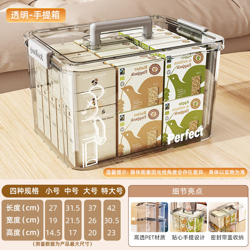 Transparent Portable Storage Box Moving Clothes Clothing Books Toy Snacks Plastic Thickened Finishing Storage Box