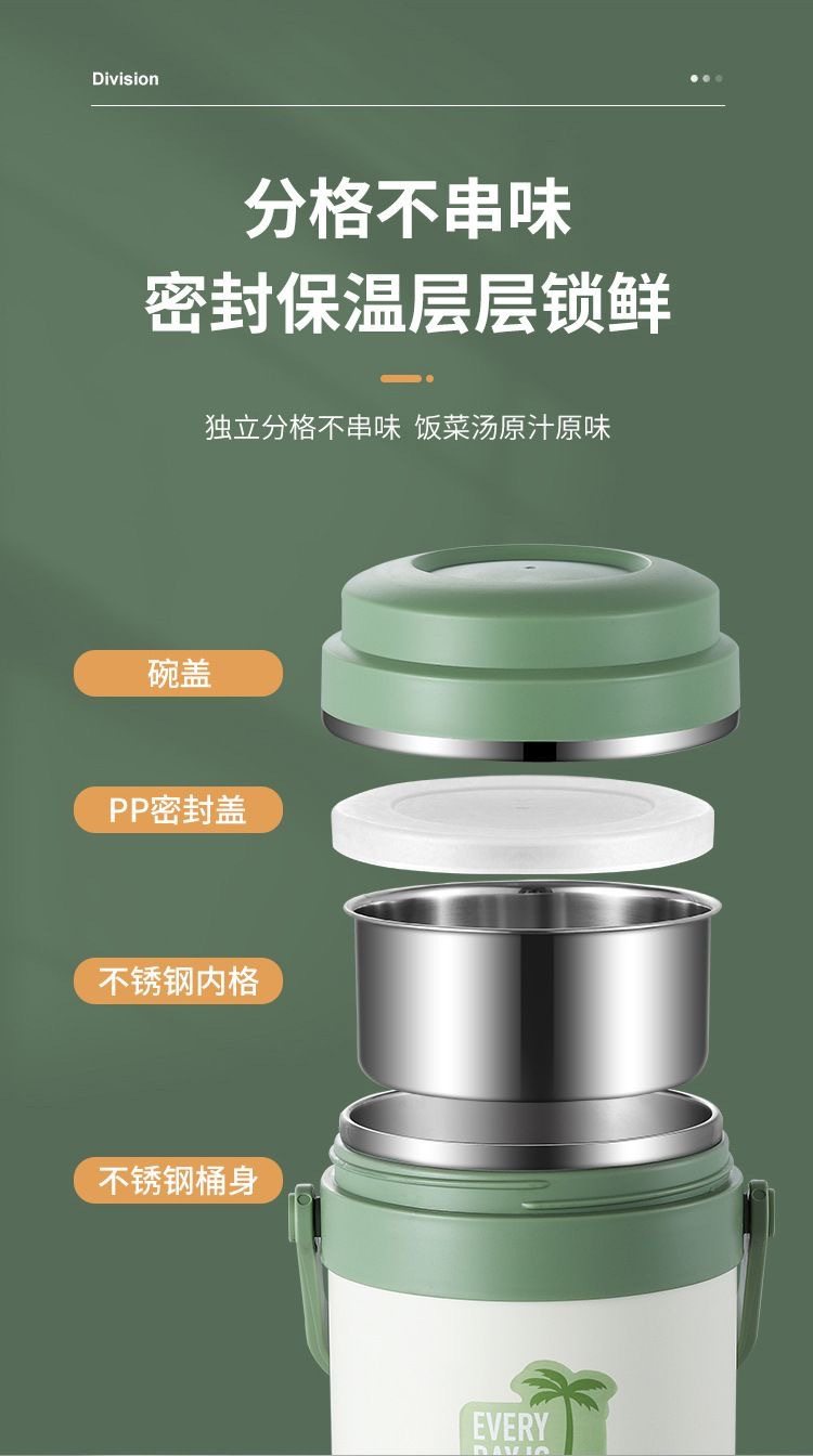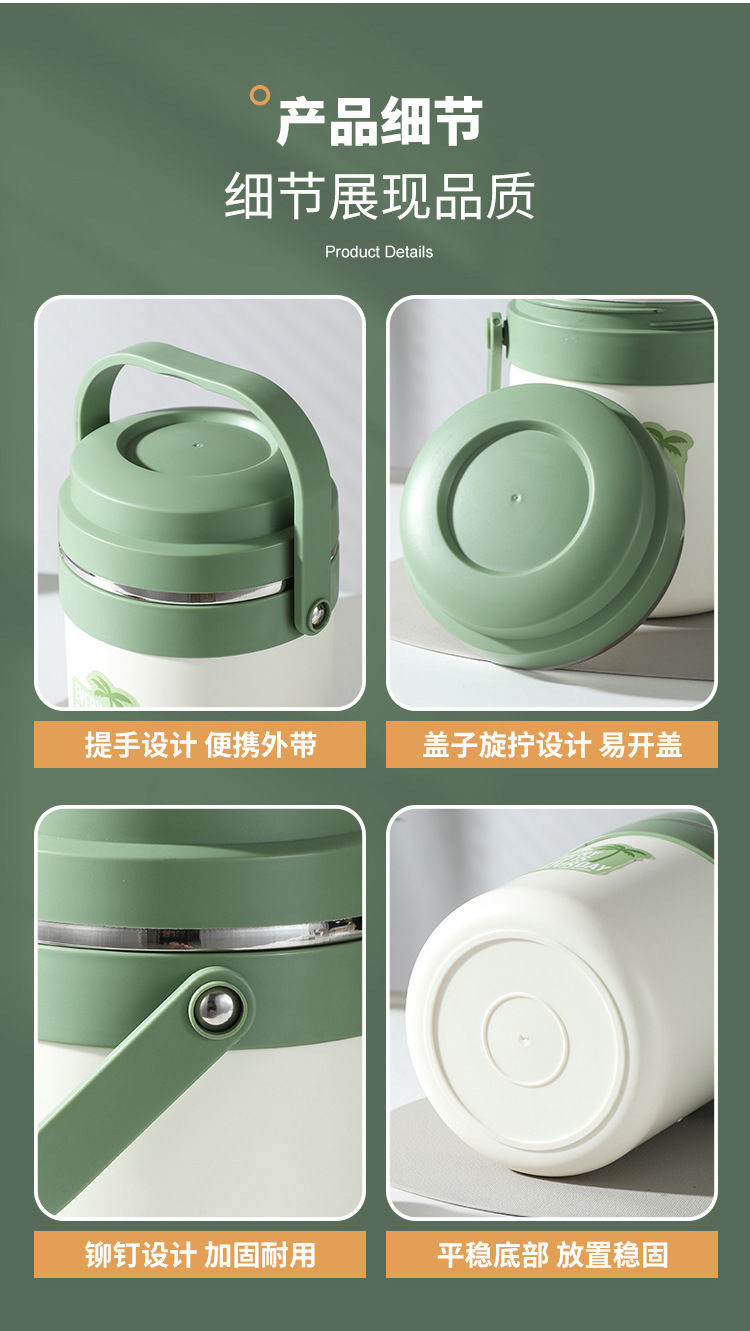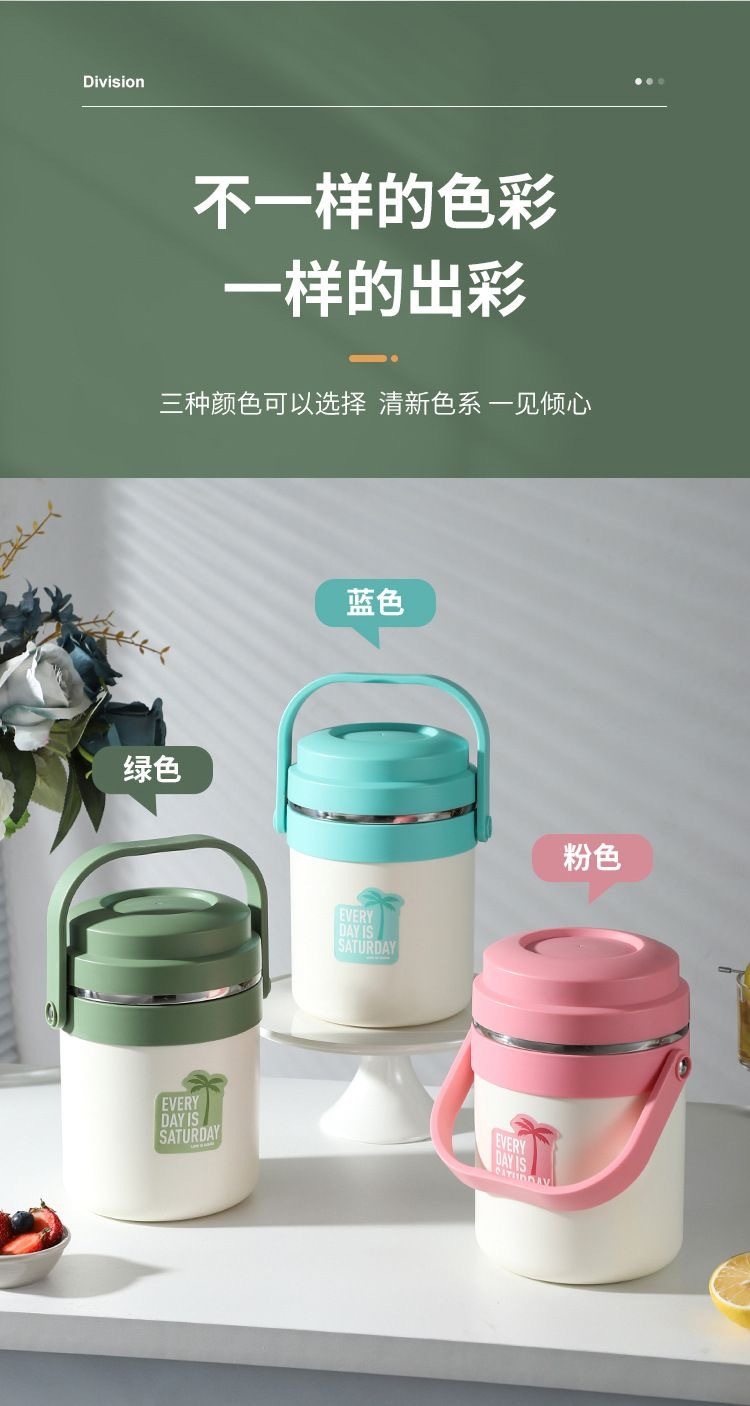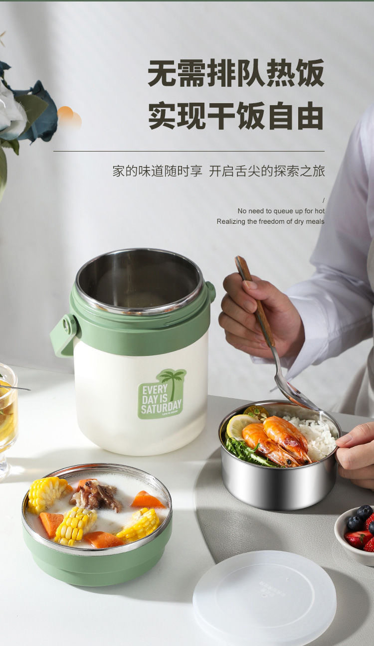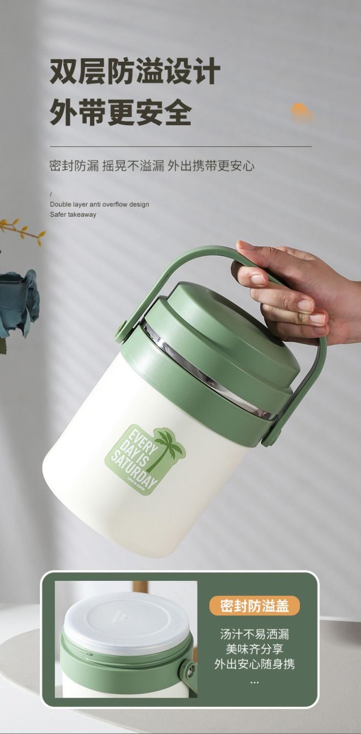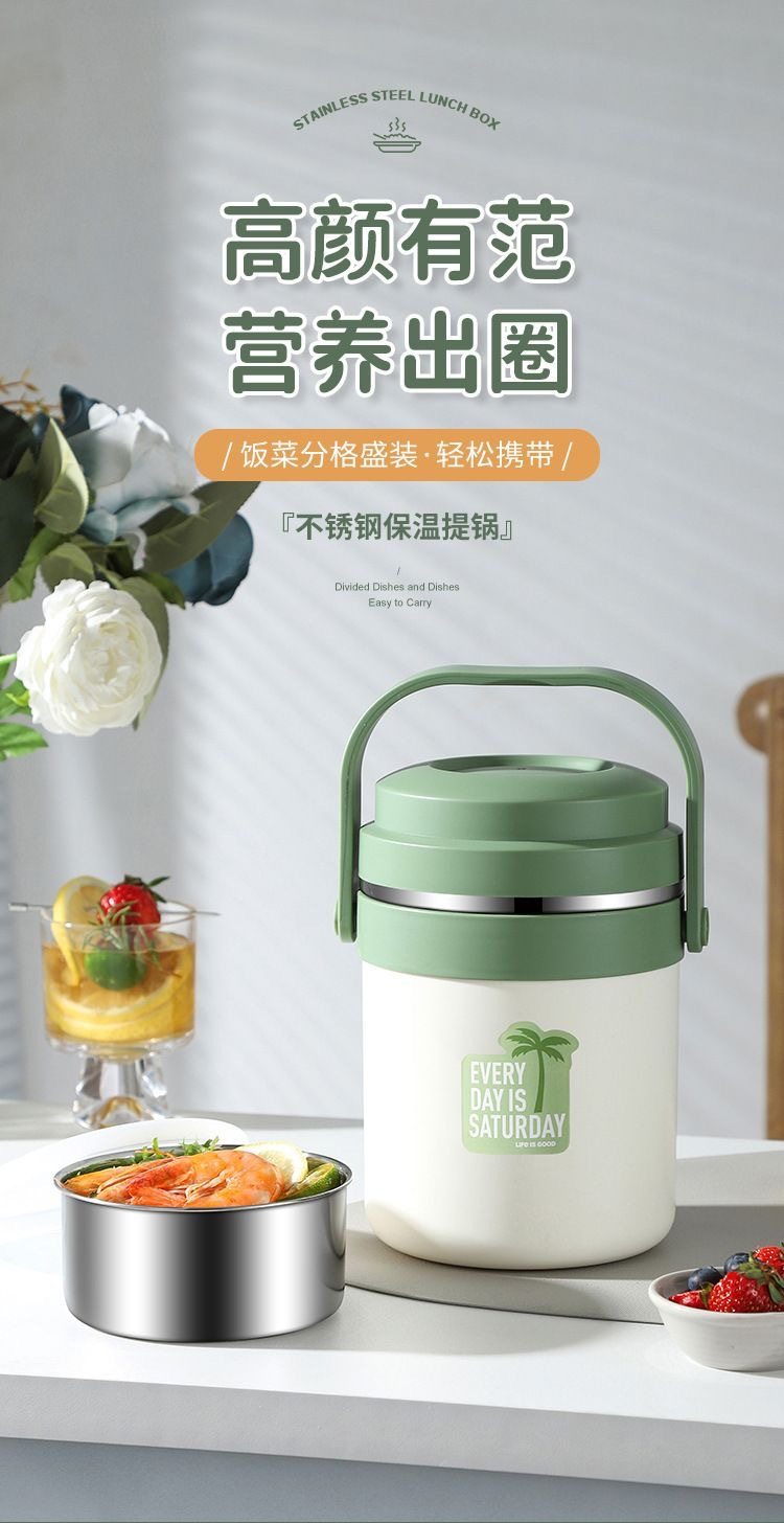 Coconut Summer Portable Insulated Rice Bucket Stainless Steel Insulated Pot with Rice Insulated Bucket Sealed Color Lunch Box Lunch Box