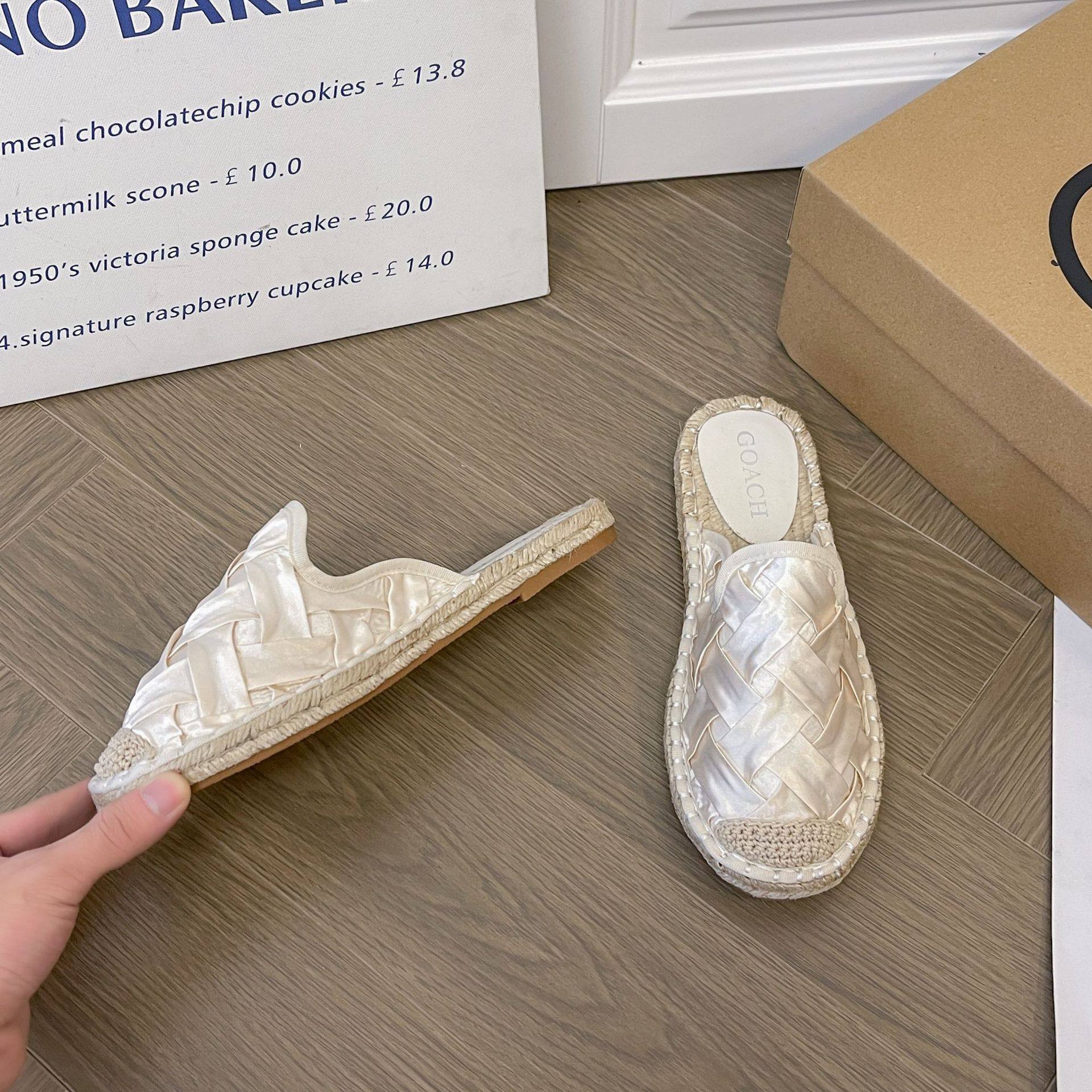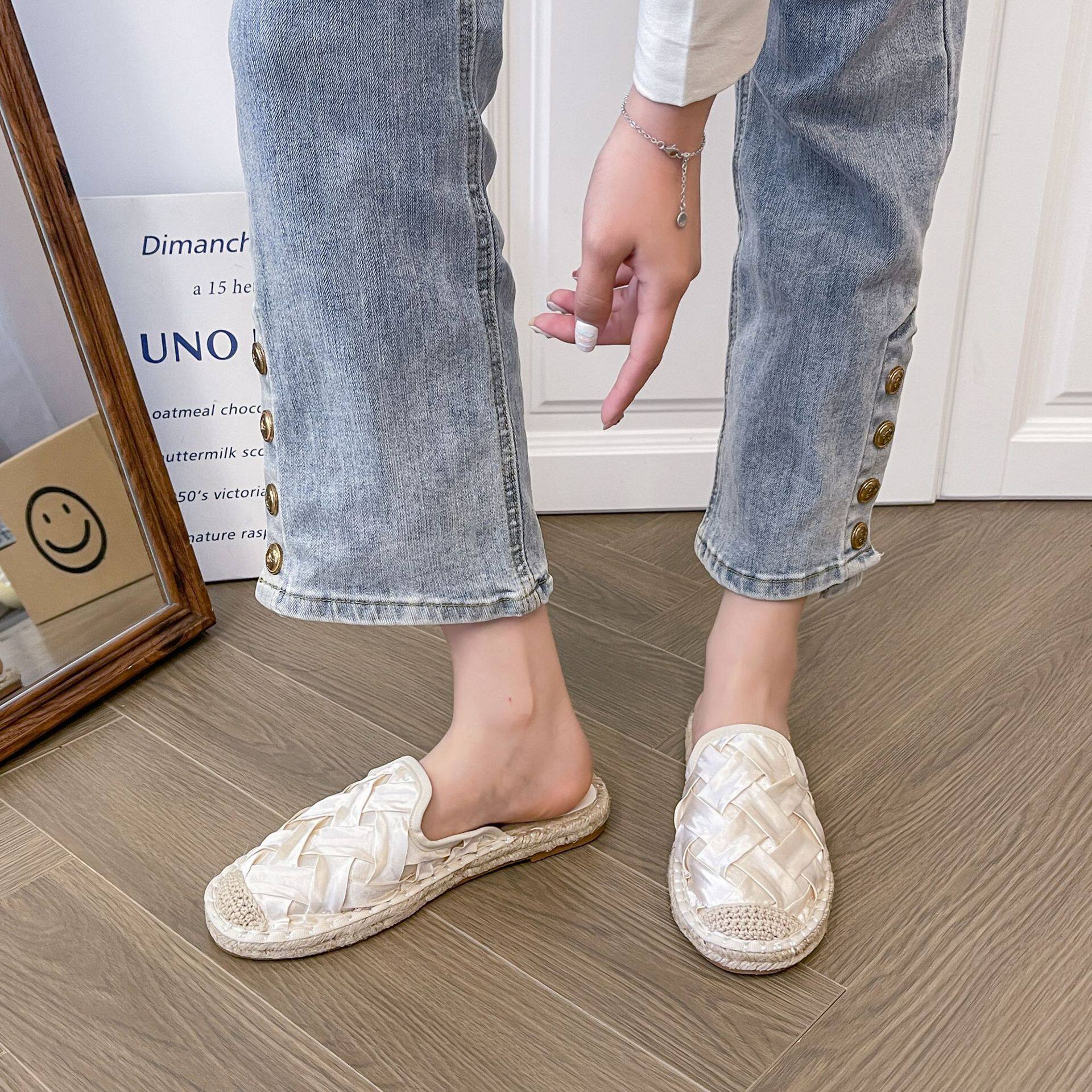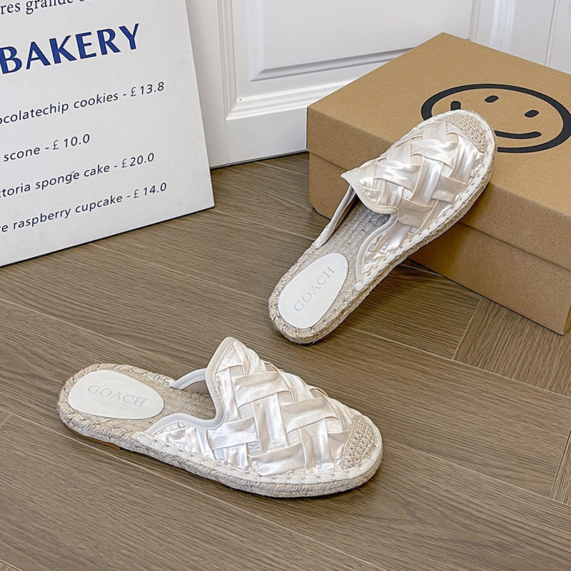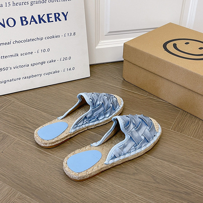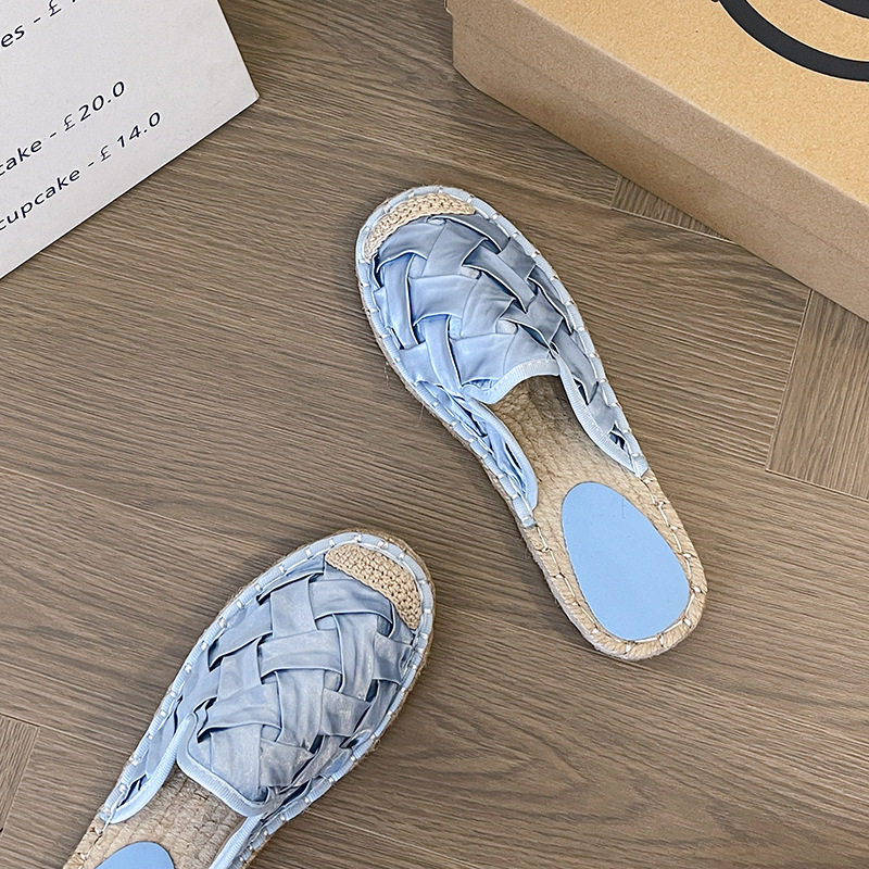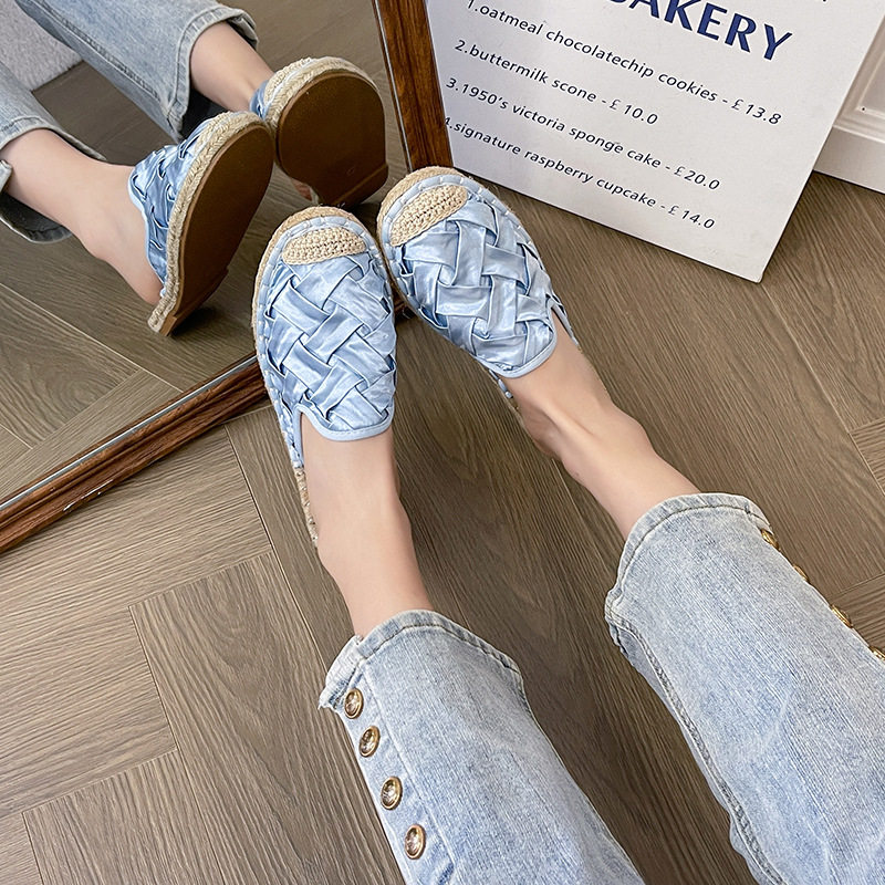 2024 Summer New Style Woven Flat Fisherman Shoes Female Student Half-drag One-step Lazy Shoes Casual Toe-toe Drag
