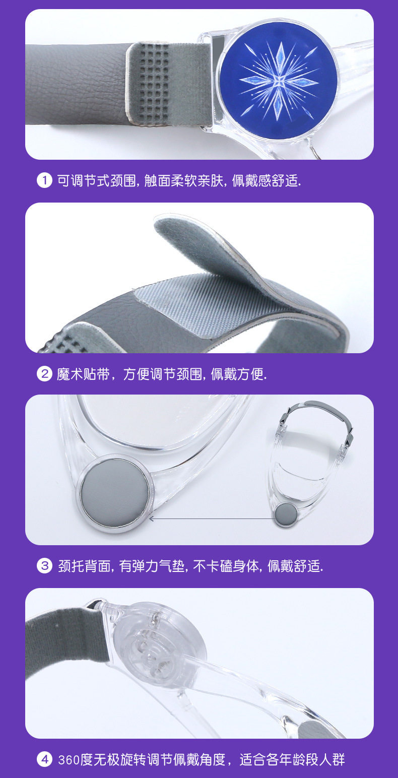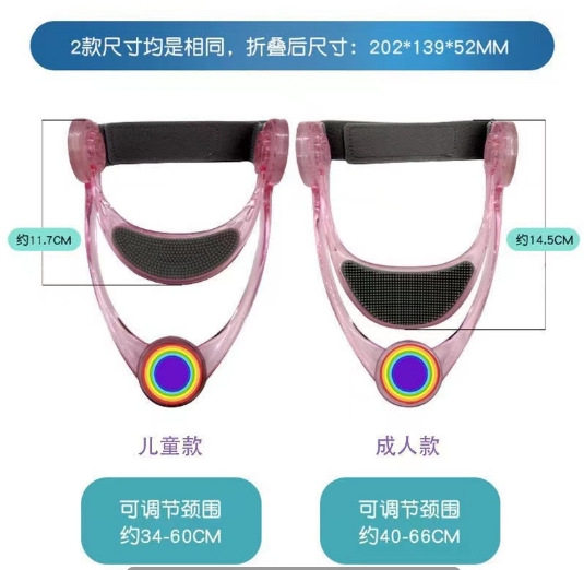 | Colour | Adult neck brace (blue dolphin style),Adult neck brace (transparent snowflake style),Adult neck brace (pink rainbow style),Children's neck brace (blue dolphin model),Children's 2nd generation neck brace (transparent snowflake style),Children's neck brace (pink rainbow style) |