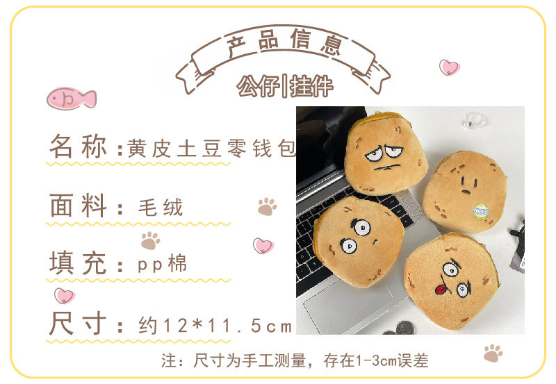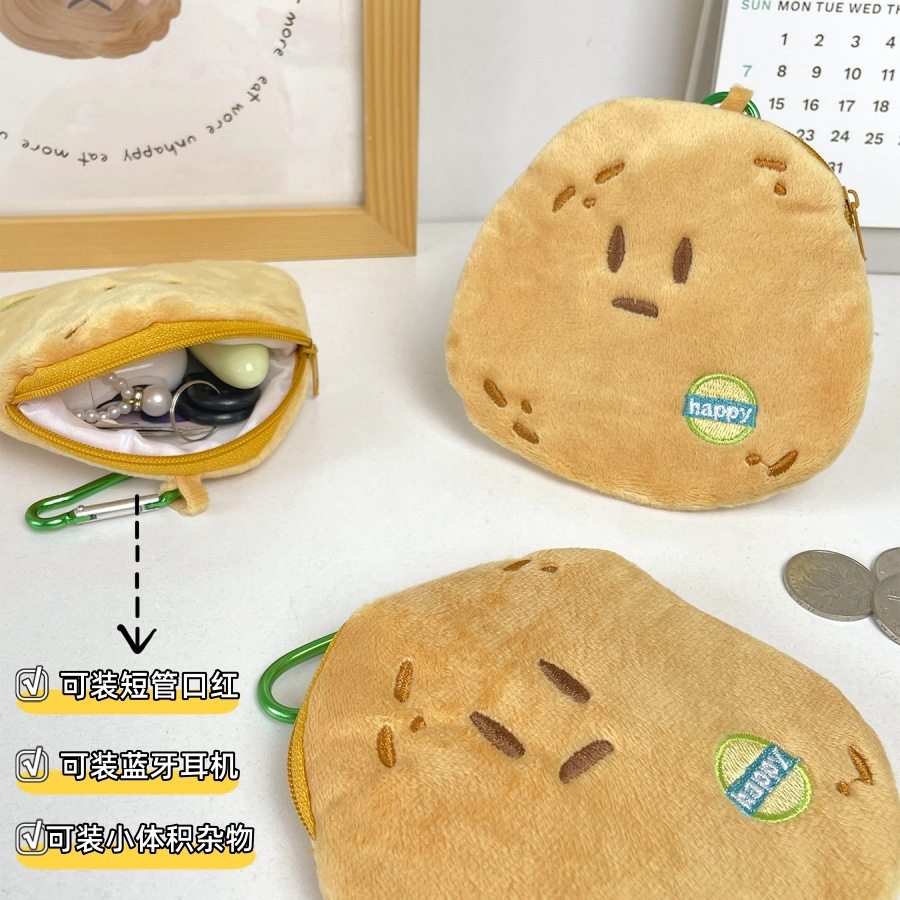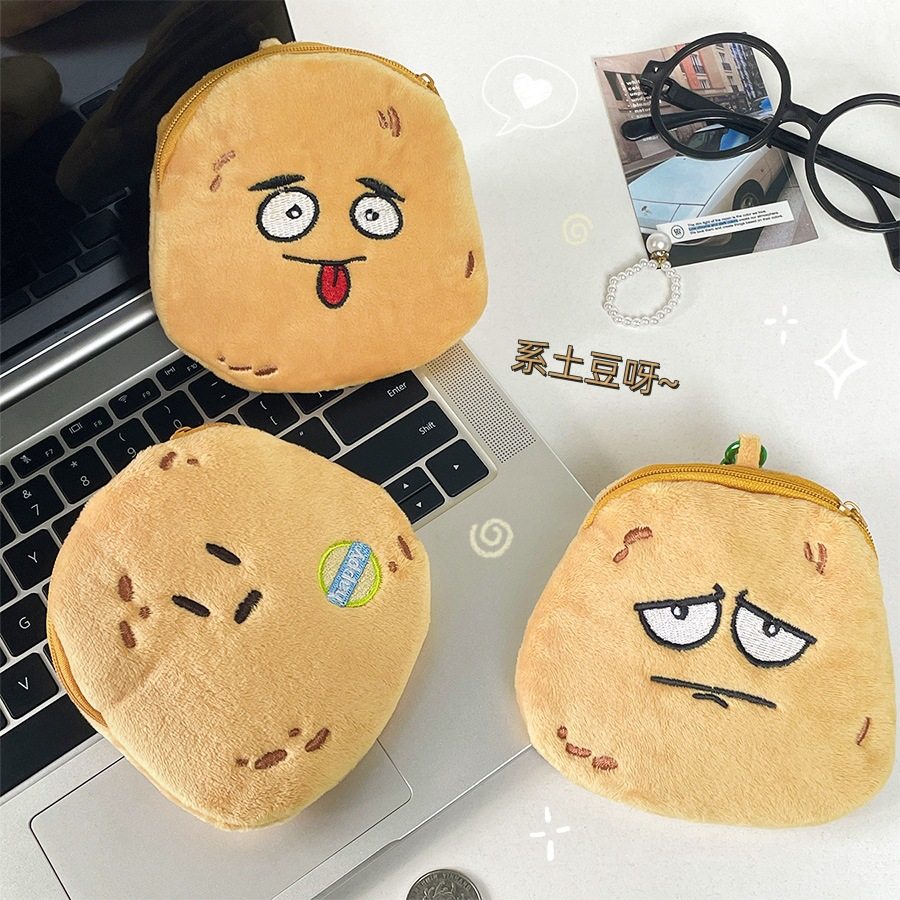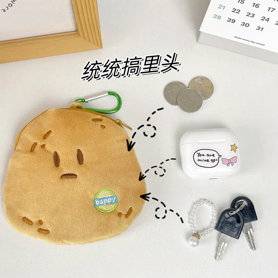 Cute Yellow Skin Potato Plush Coin Purse Simulated Potato Keychain Headphone Bag Coin Portable Storage Bag Wholesale