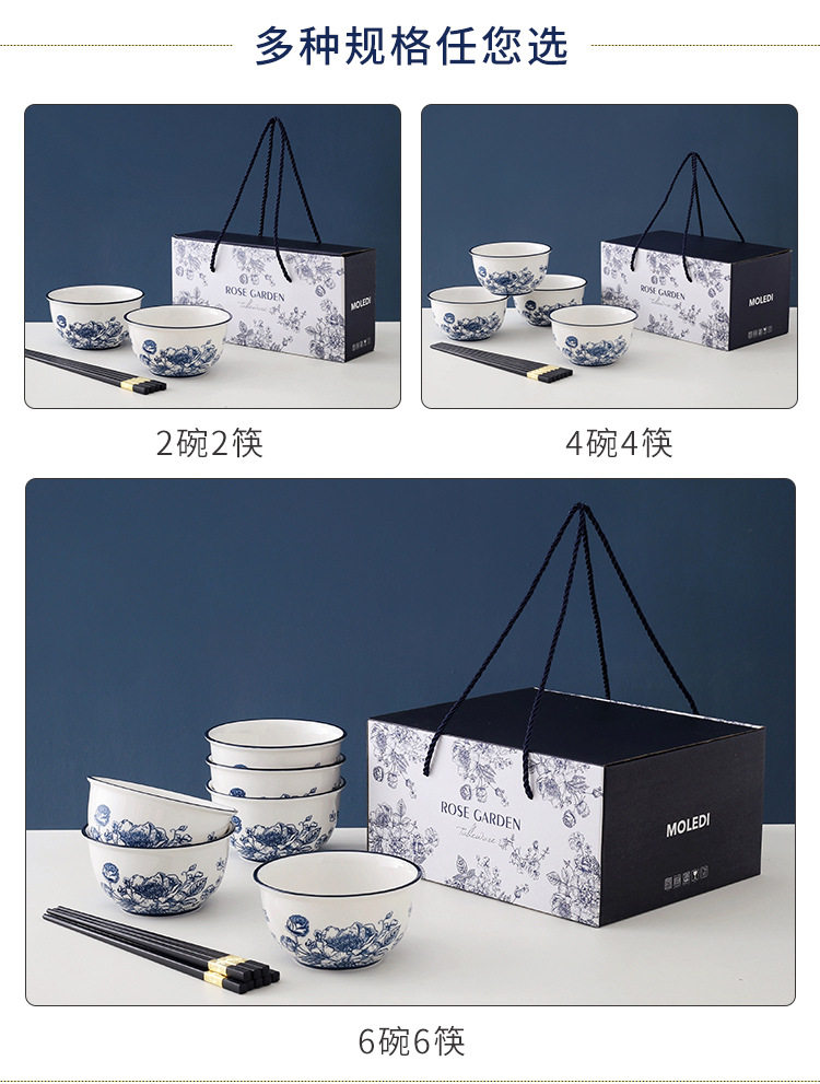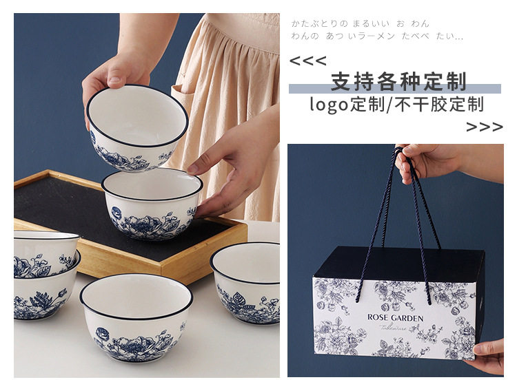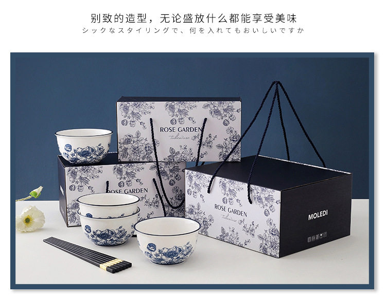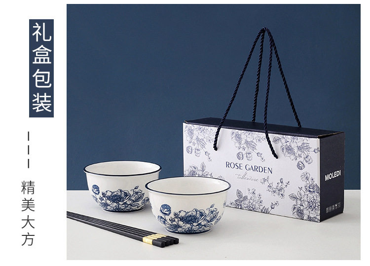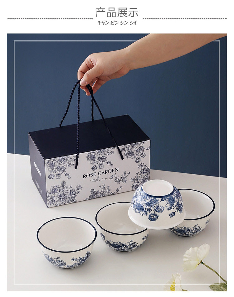 Blue Rose Blue and White Porcelain Bowl Gift Box Set New Household Tableware Gift Box Gift