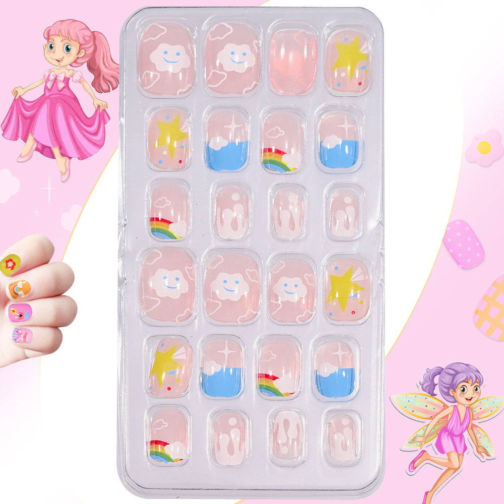 Children's Wearable Nails 120 Pieces Creative Ocean Style Kidsren's Wearable Nails Cartoon Girls Set Nails