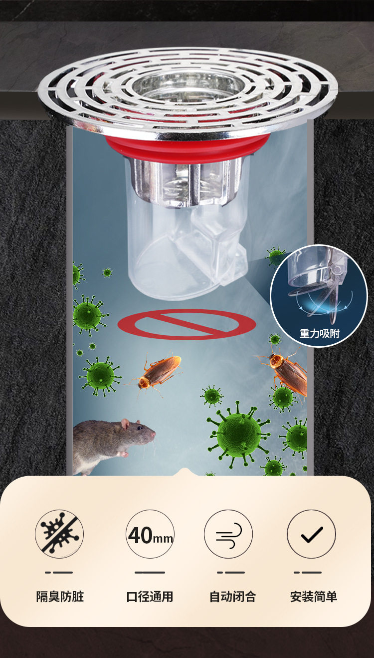 Floor drain deodorant artifact toilet universal insect-proof closed cover toilet anti-return odor sewer floor drain inner core