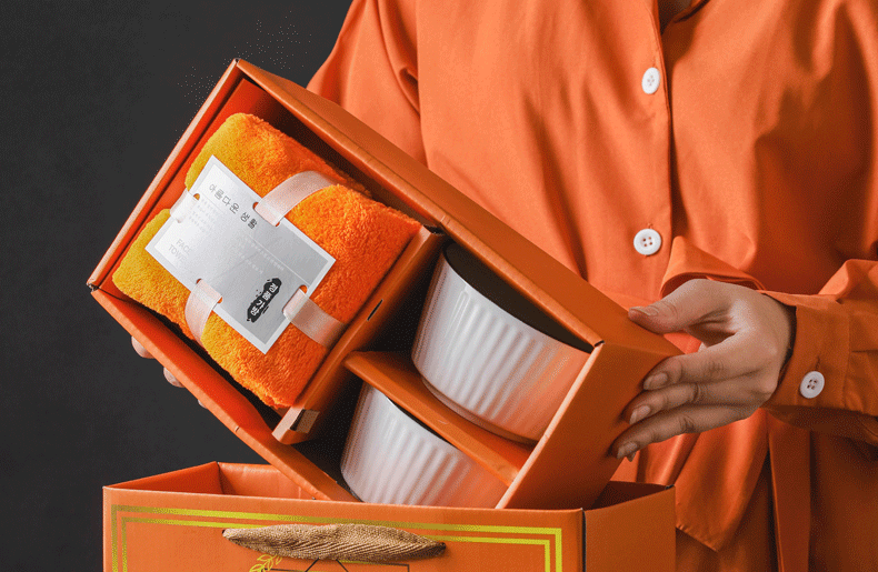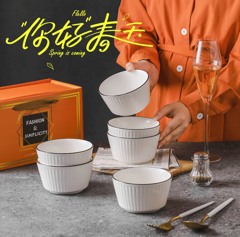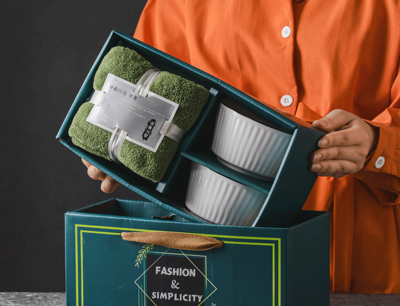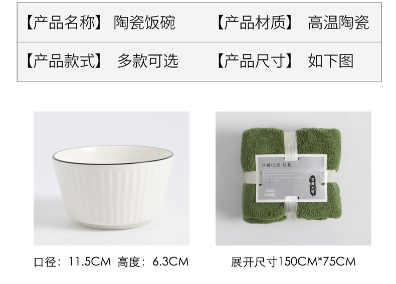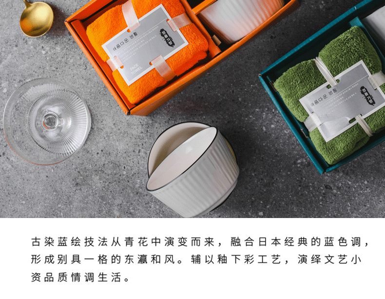 Light Luxury Retro Vertical Pattern Bowl and Towel Set, Sales Wedding Gift, Good Souvenir, High-Looking Ceramic Bowl and Tableware