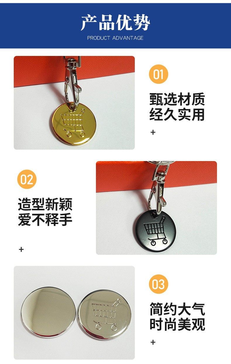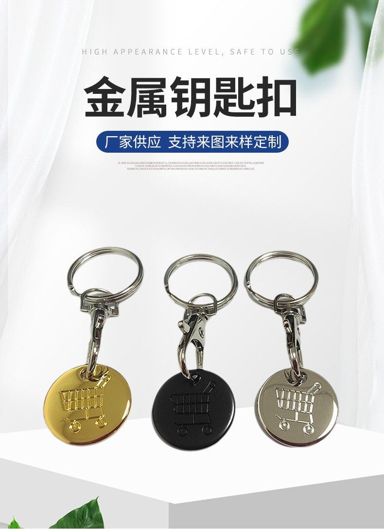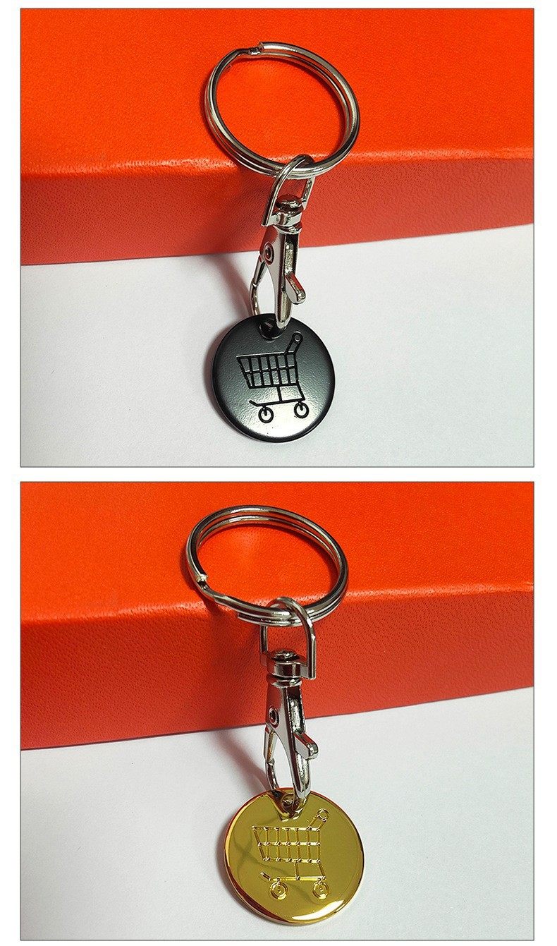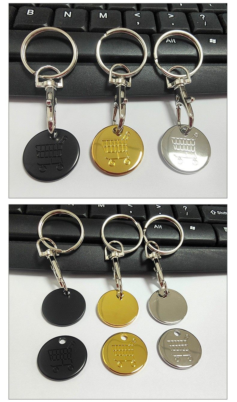 Cross-border European and American Supermarket Hand-pushed Shopping Cart logo Coin Metal Tokens Lobster Clasp Keychain Advertising Gift Batch