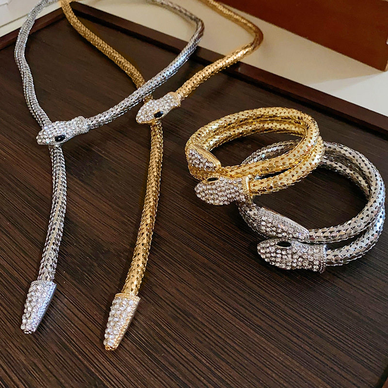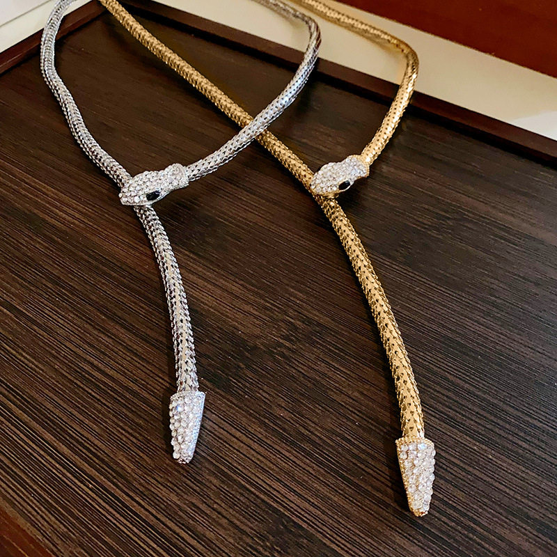 French Entry Luxury Snake-shaped Diamond-encrusted Magnetic Necklace Niche Simple Design Clavicle Chain Fashion High-end Jewelry for Women