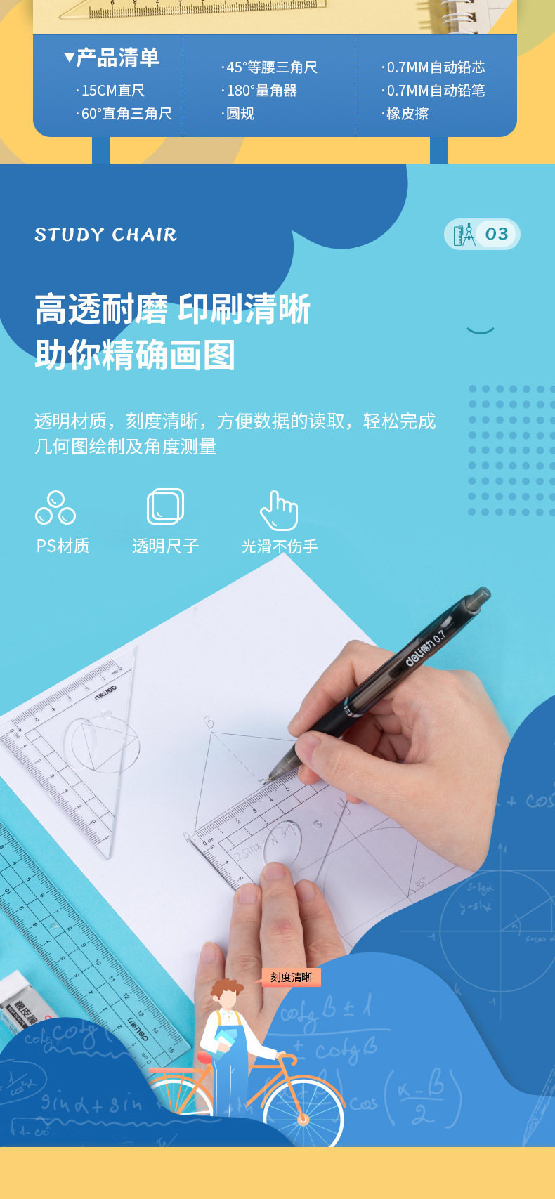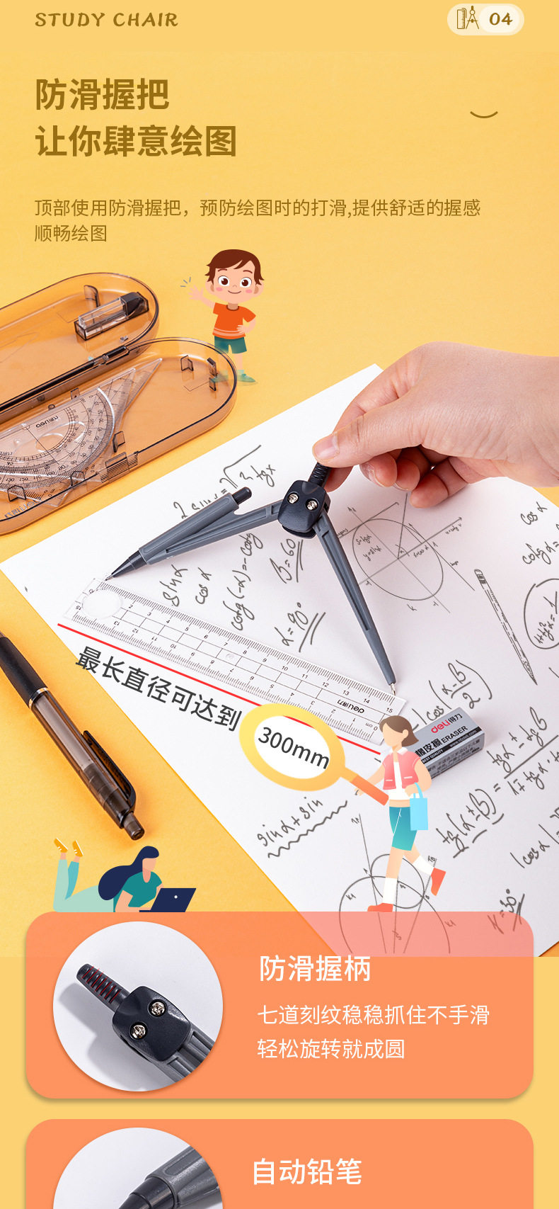 Deli stationery examination special set of ruler compasses for college entrance examination ruler triangle four-piece set of ruler suit for primary school students