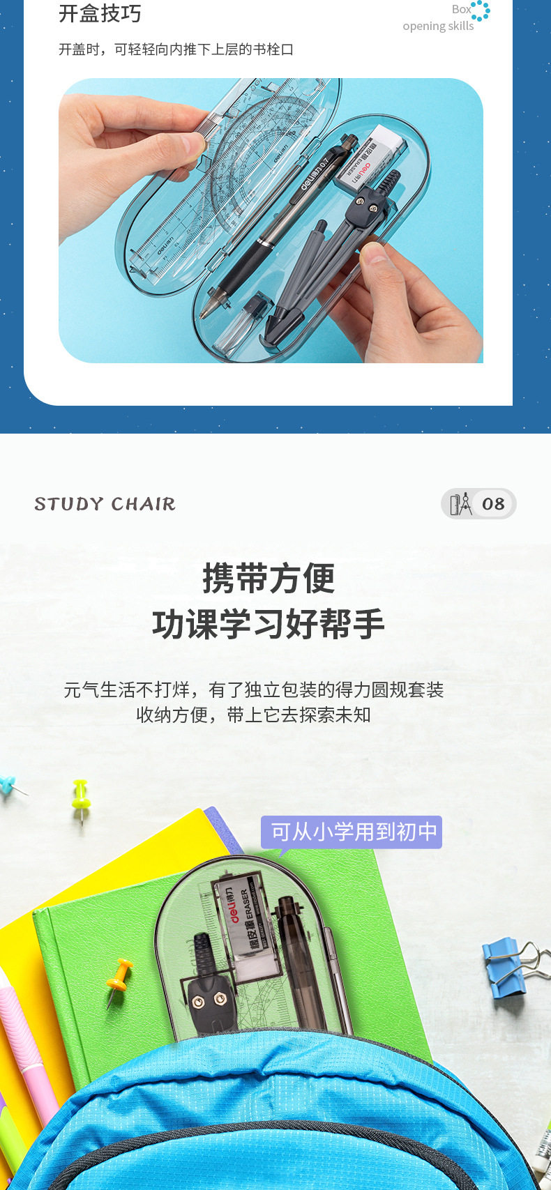 | Size | 2402761.5cm regulation suit (red) (set),Vc109-lt le yitong ruler set (mixed) (set),8604 compass (five-piece set) (set),8646 small size compass (mixed),72151 compass set (silver),8622 compass (mixed) (set),9591 |