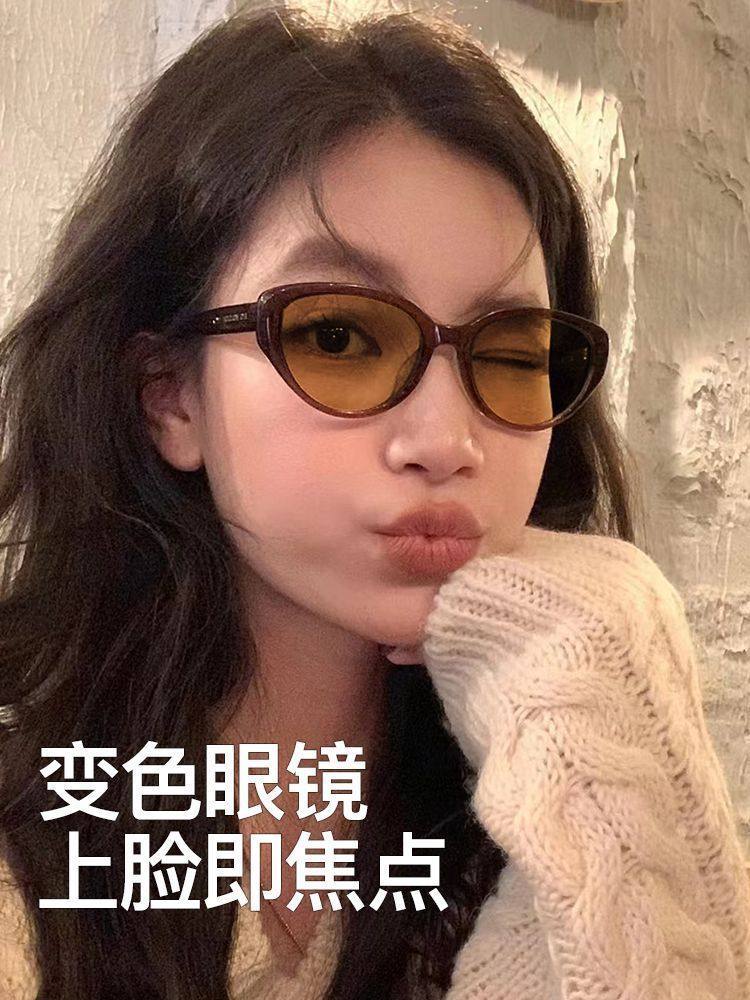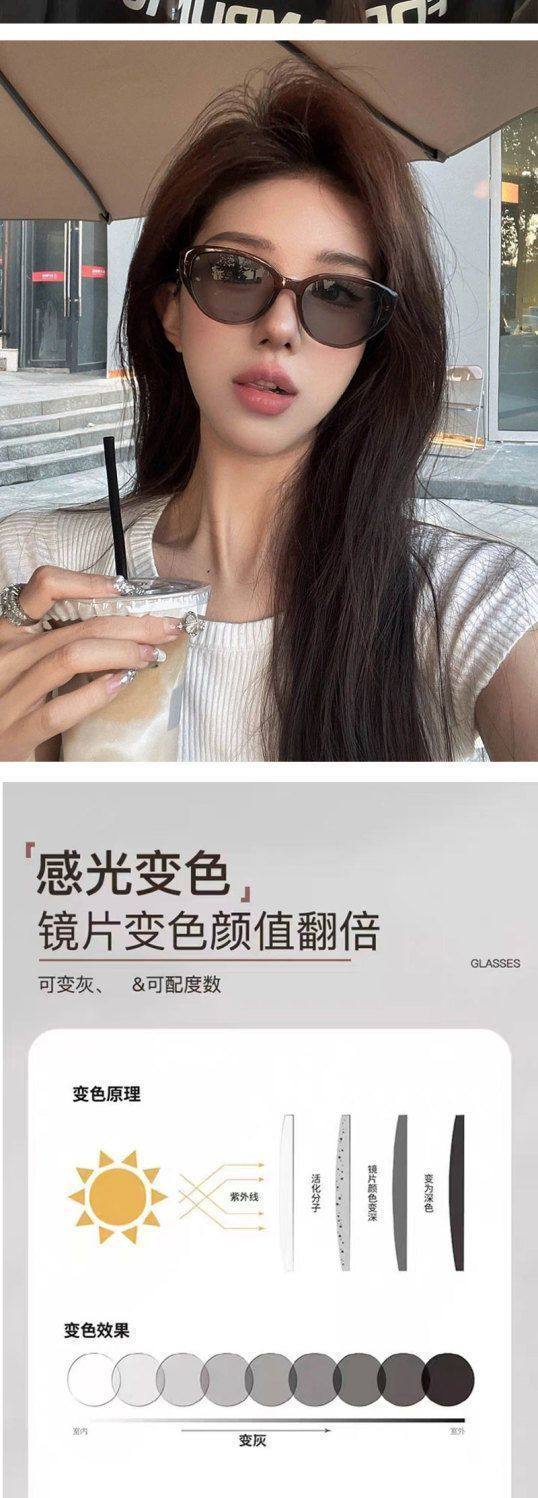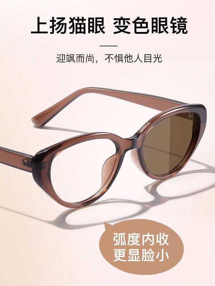 Anti-blue light without makeup myopia glasses frame for women with super light color change myopia dual-purpose glasses frame for female cat smart face